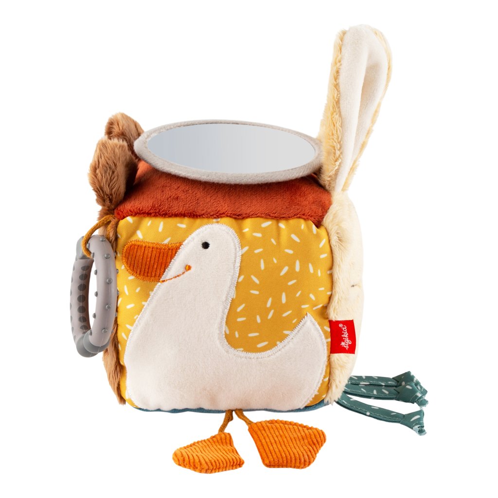 Barevná a podnětná hračka pro děti od 3 do 36 měsíců, která spojuje měkký design s prvky podporujícími smyslový rozvoj. Kostka se zvířátky, zrcátkem a kousátkem zajišťuje zábavu doma i na cestách.