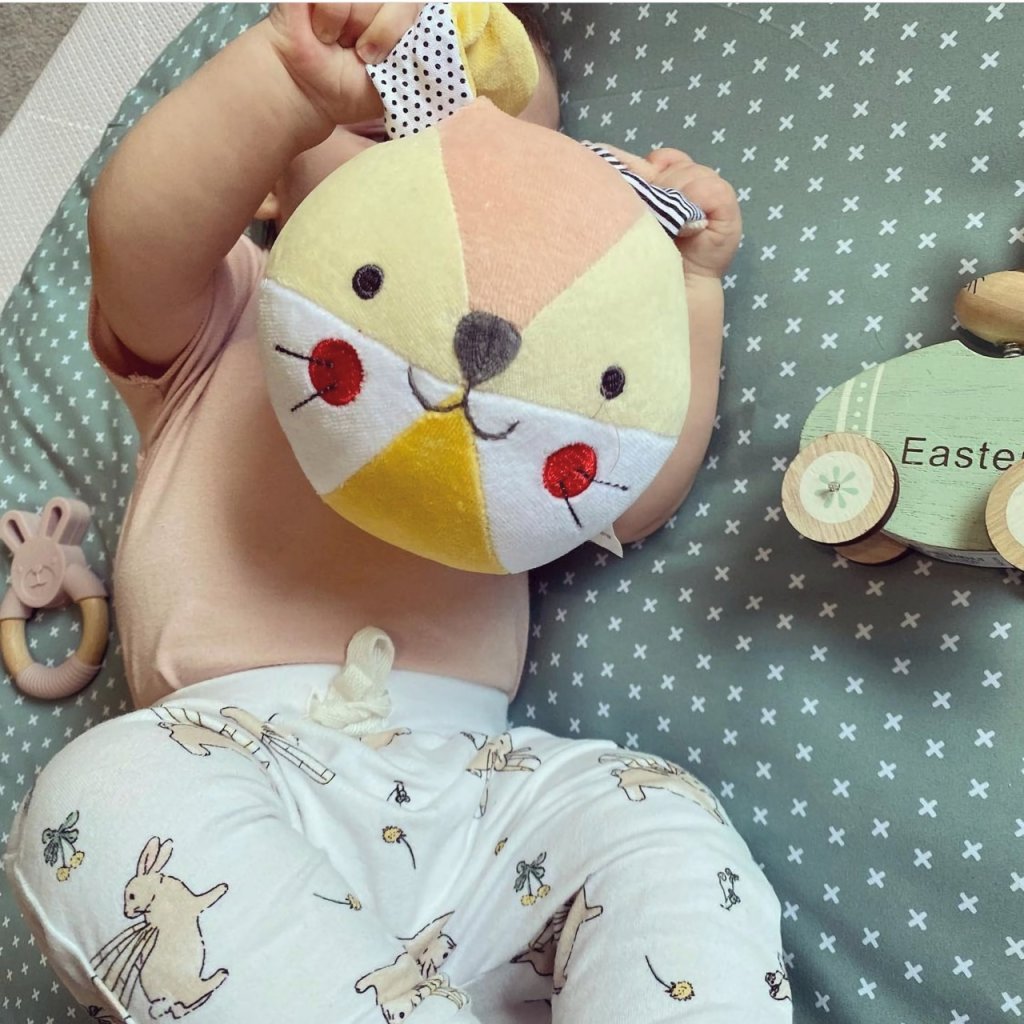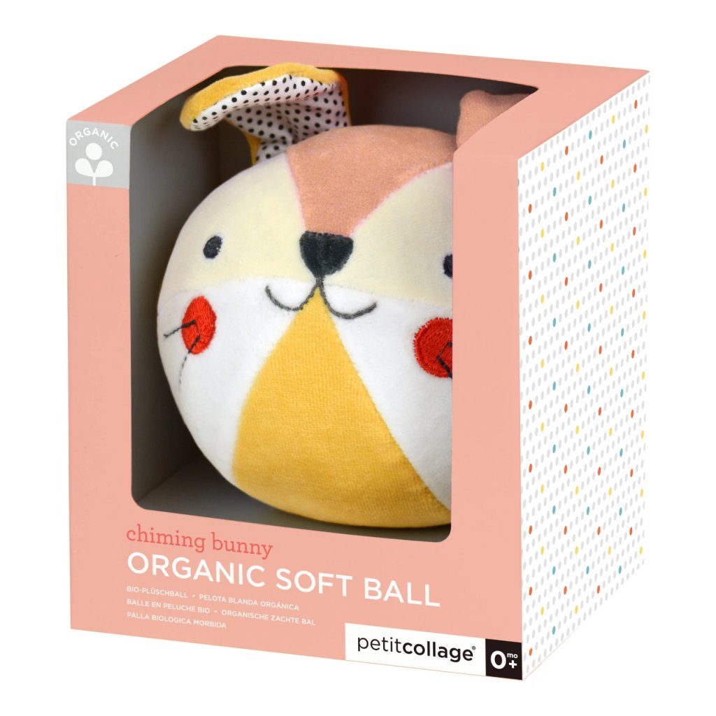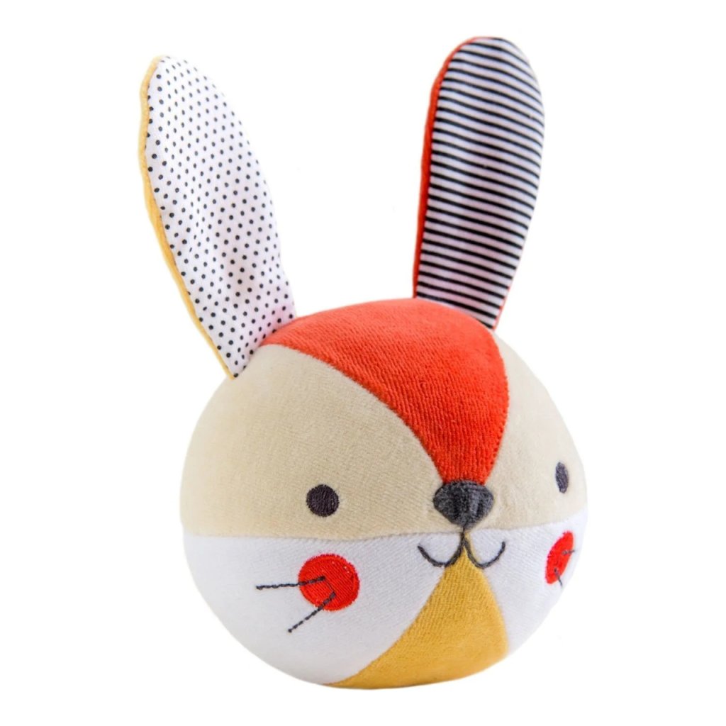 Zábava s chrastícím zajíčkem. Ručně vyrobeny, měkký chrastící zajíček Organic Soft Ball je ideální pro uchopení do drobných rukou. Chrastítko je vyrobeno z organické bavlny nejvyšší kvality s certifikací GOTS. Vhodný od narození.