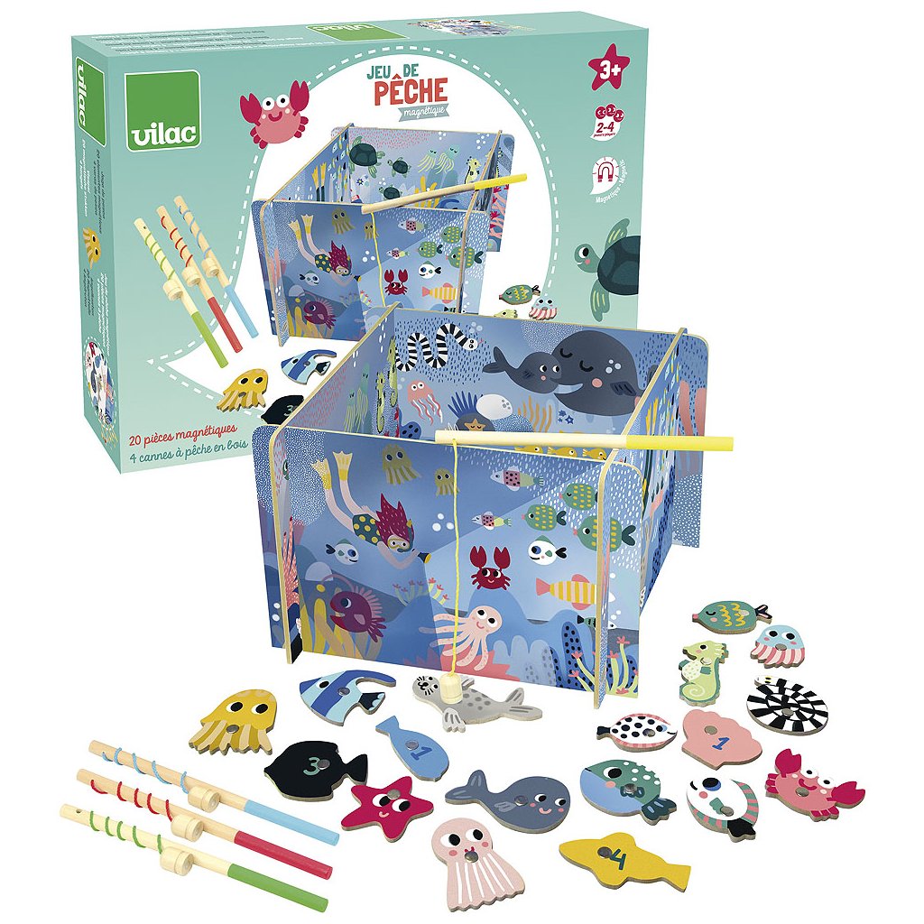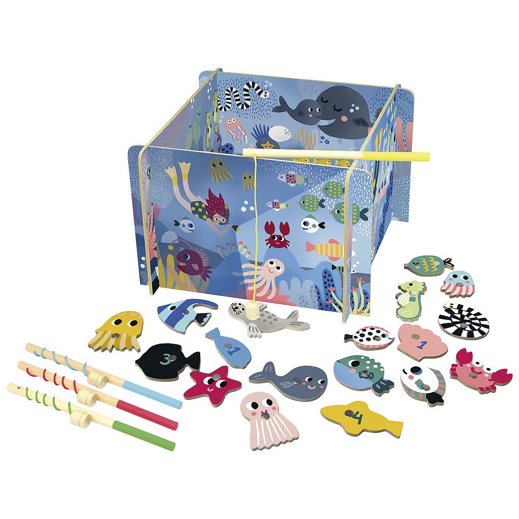 Zábavná a oblíbená hra, která děti vtáhne do světa ryb a barev! Hra je určena pro čtyři hráče a obsahuje 20 dřevěných herních dílků a bohatě ilustrovanou kartonovou herní plochu. Díky magnetickým udicím si děti procvičí trpělivost, koordinaci a jemnou motoriku.
