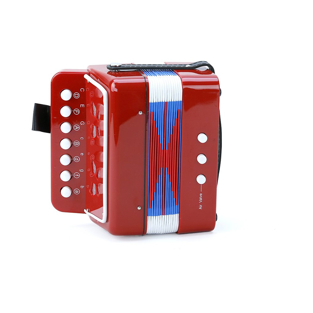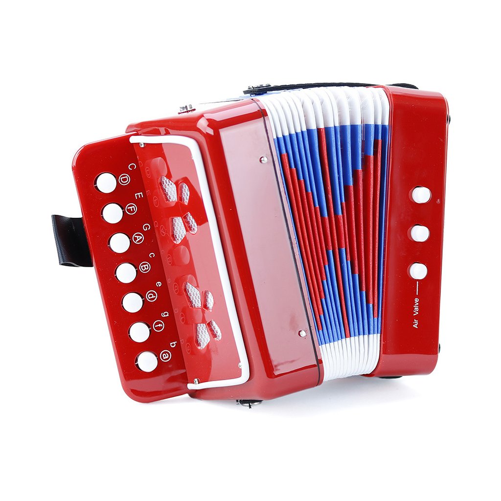 Krásný akordeon v modro-bílo-červeném provedení uvede děti do kouzelného světa hudby. Obsahuje 10 kláves a umožňuje hrát až ve 14 tóninách. Ideální pro první hudební pokusy, rozvoj rytmického cítění a lásky k hudbě.