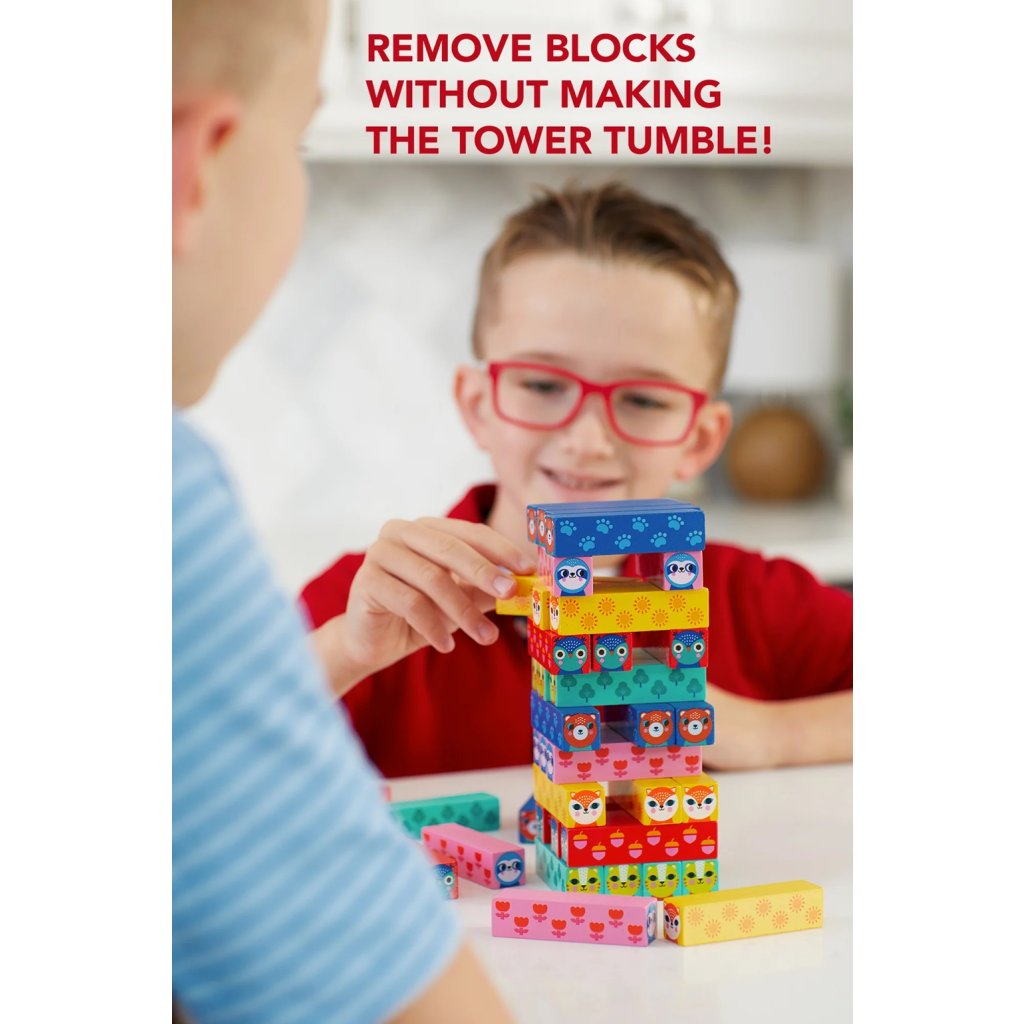 Tato hra pro všechny věkové kategorie s motivem zvířátek a přírody samotné se stane zábavou pro celou rodinu. Cílem hry je postupně vyjmout zespoda dřevěné dílky bez toho, aby věž spadla, a položit je nahoru. Kdo má nejpevnější ruku? Hra Wild Wobble od Mudpuppy obsahuje celkem 40 dílků, 4 v každé vrstvě a podporuje jemnou motoriku, manuální zručnost, trpělivost a soustředění.