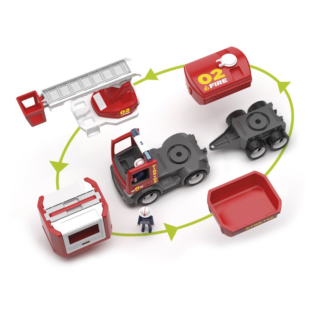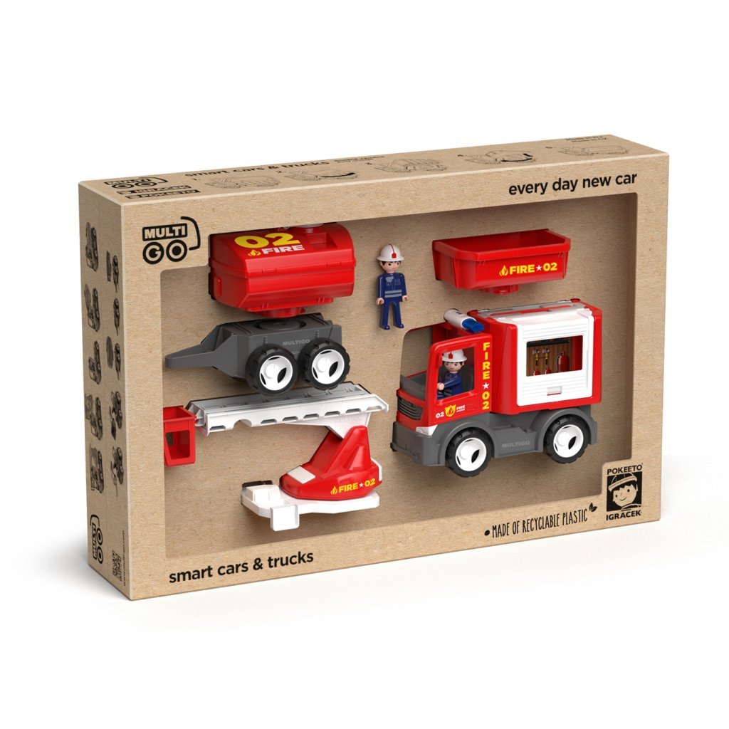 MultiGO hasičský set aut 4v1 s jedinečným stavebnicovým systémem výměny nástaveb a Igráčky Hasiči. Rozvíjí jemnou motoriku. Pro děti od 3 let. Eco-friendly balení s FSC® certifikací, 100% recyklovatelný plast, nadstandardní životnost. Vyrobeno v ČR.