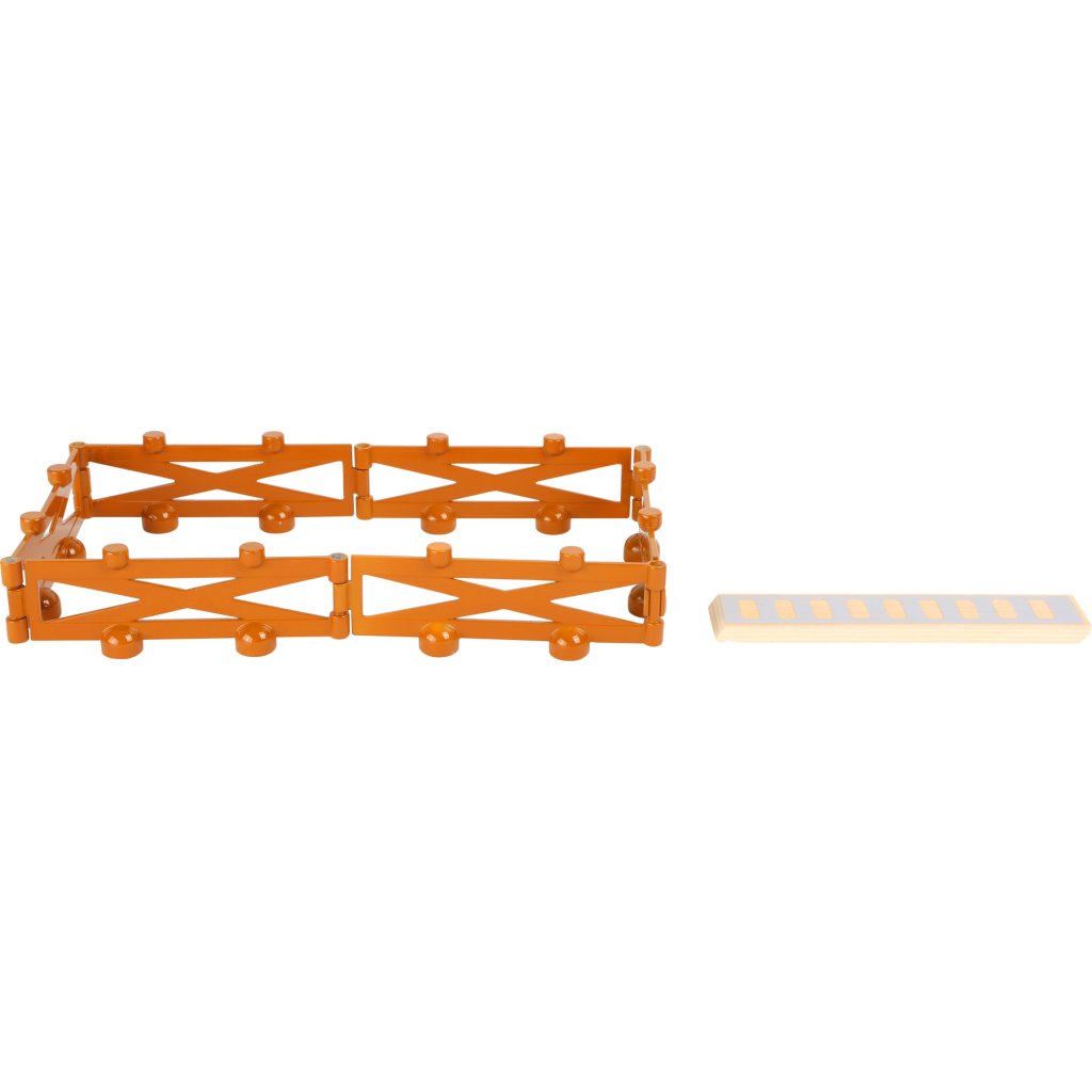 Vzrušující život na venkově! S touto farmou mohou děti zažít den plný zážitků s farmářem a jeho zvířaty. Farma ze dřeva a plastu obsahuje stodolu s dvojitými vraty, traktor s přívěsem a balíky sena, které lze přemisťovat pomocí magnetů. Sadu doplňuje kůň, kráva, prasátko a šest dílů ohrady. Budova stodoly má funkční jeřáb, kterým může farmář traktorem přivezené balíky sena uskladnit v suchu druhého patra. Posledním večerním úkolem je nakrmení zvířat, které jste dovedli z polí do stáje. Nezapomeňte zavřít bránu! Na tomto statku je opravdu živo, a tak si děti užijí spoustu rozmanité zábavy.