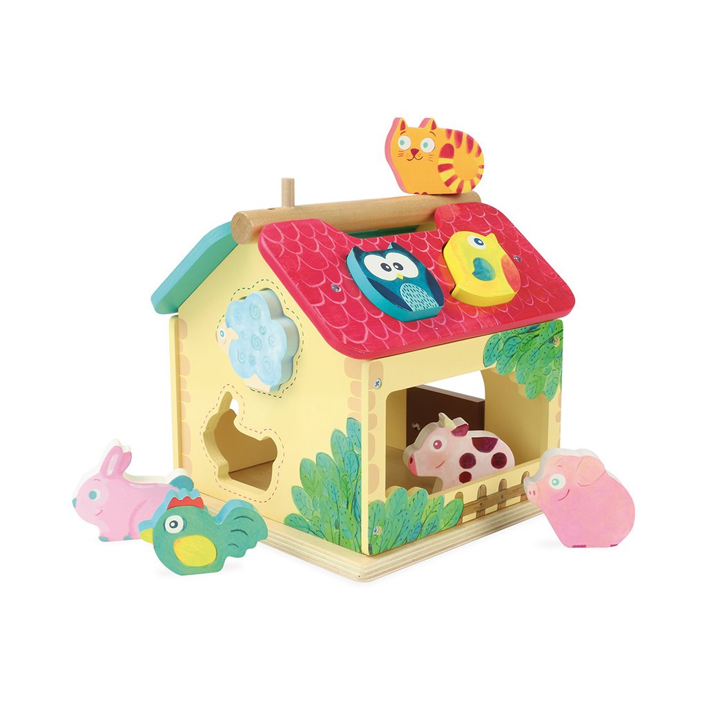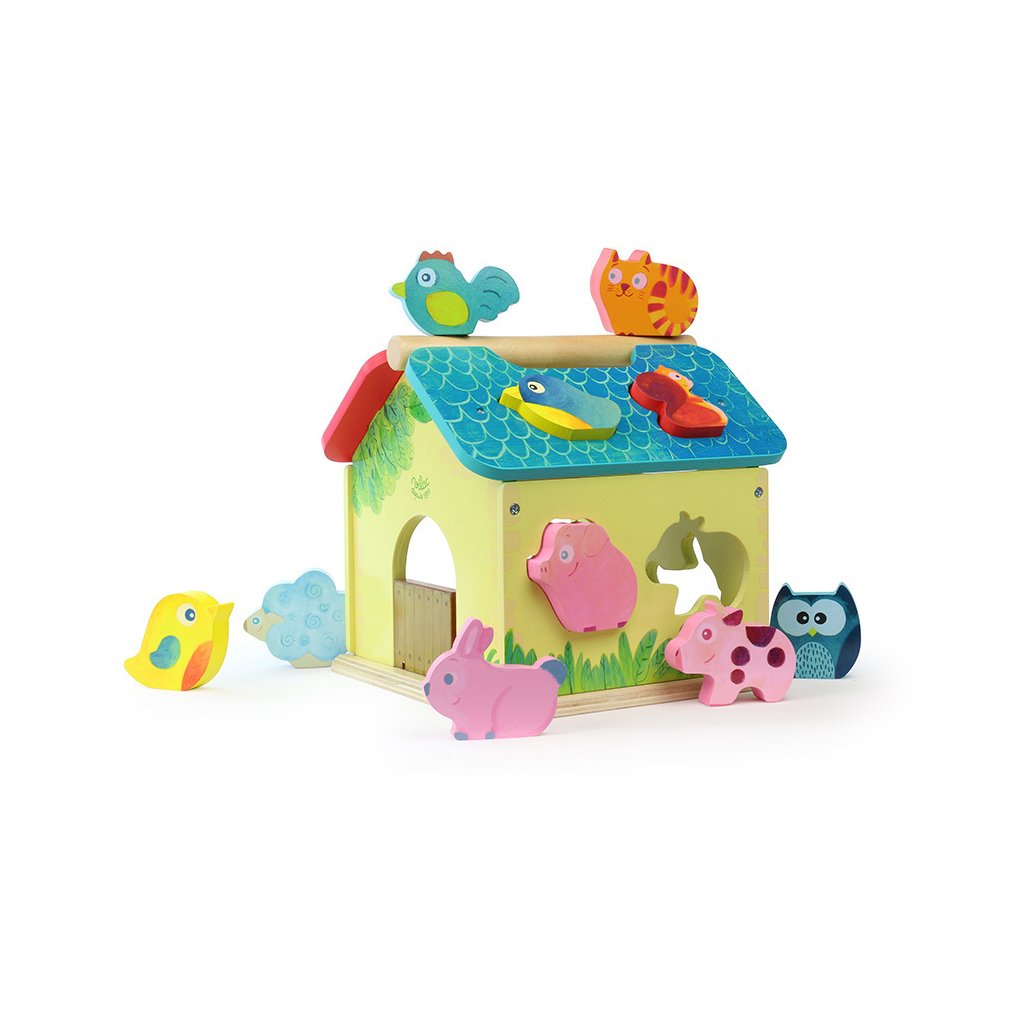 Barevná dřevěná farma s vkládacími otvory pro jednotlivá zvířátka zve děti k objevování a tvořivé hře. Při vkládání si procvičují jemnou motoriku, logické myšlení i trpělivost a zároveň se učí poznávat tvary, barvy a zvířata.