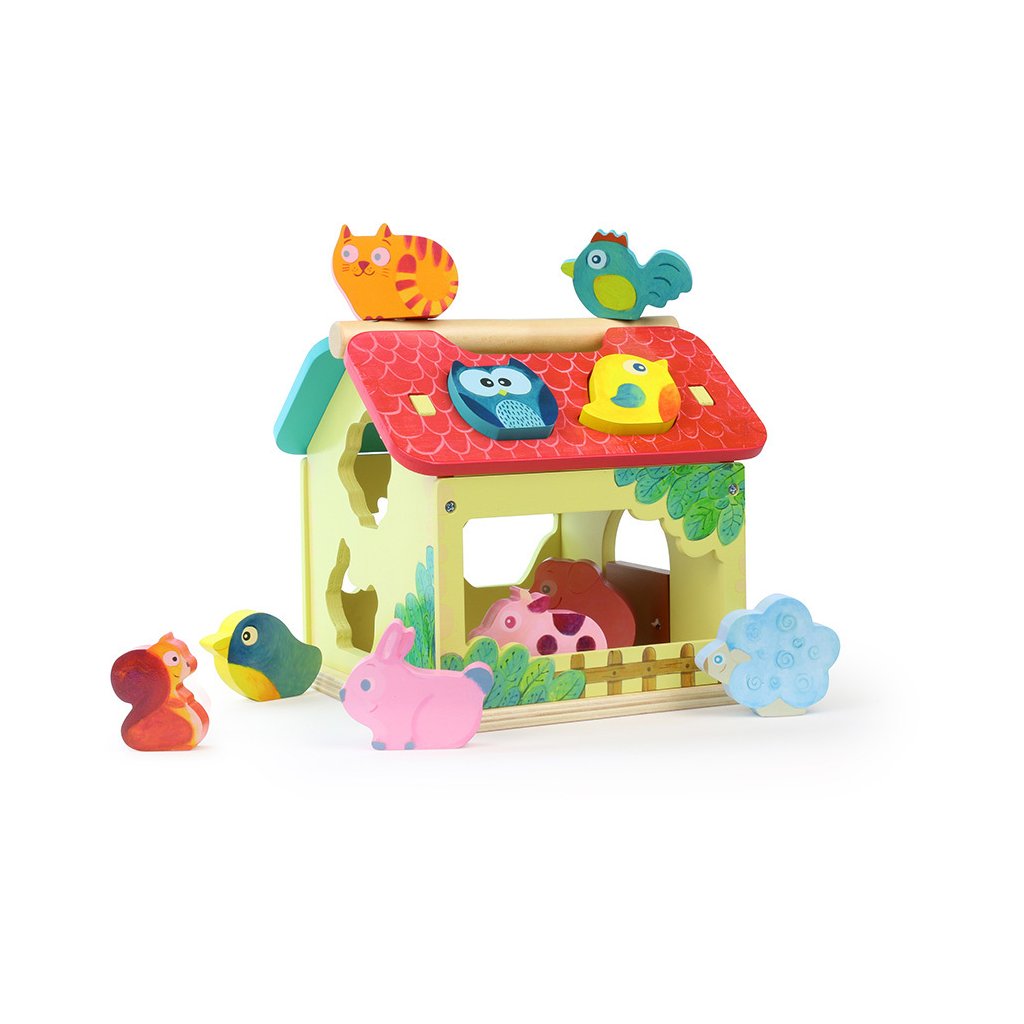 Obsahuje 11 dílků (10 zvířátek + domeček)