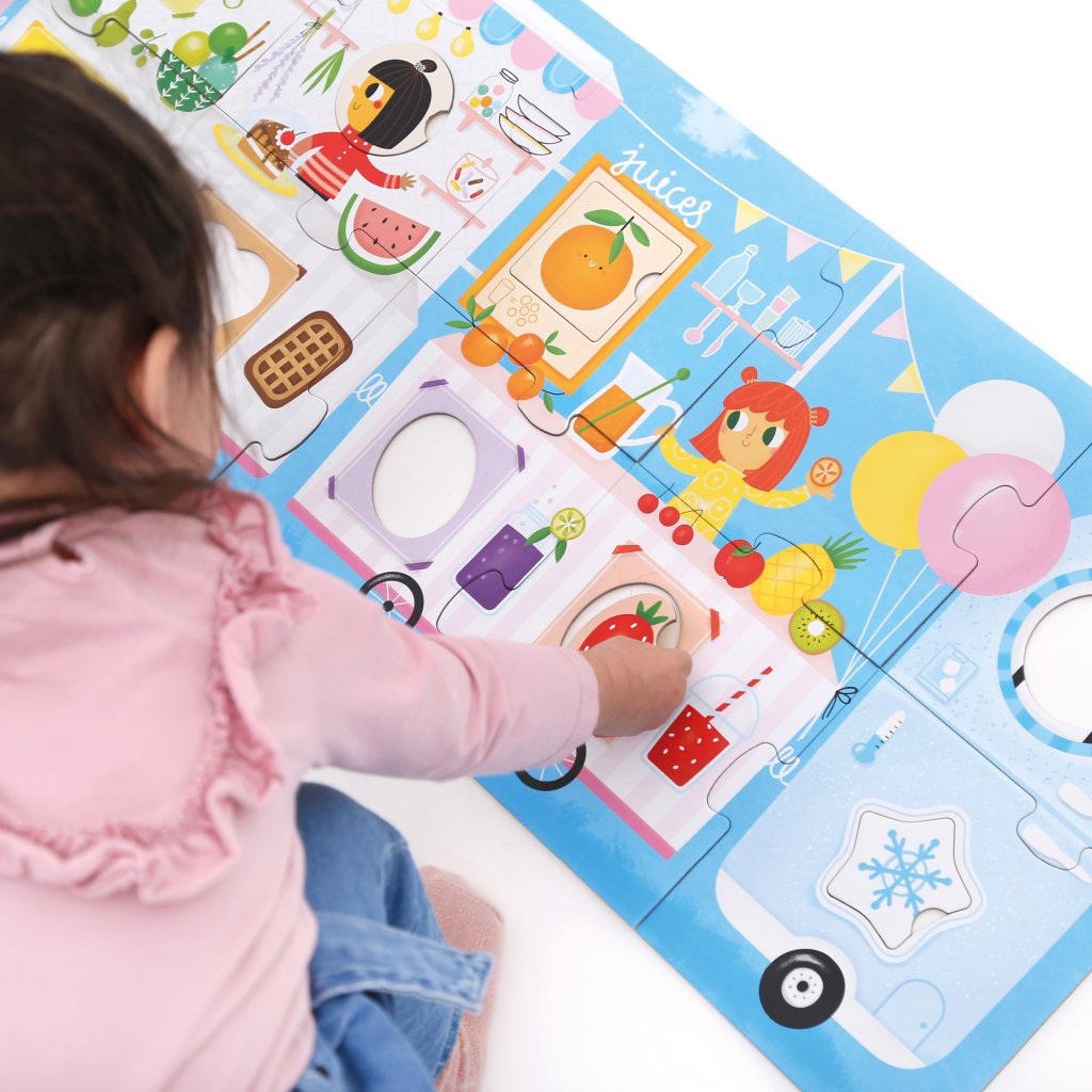 Zábavná skládačka s motivem food trucku, která dětem pomáhá rozvíjet motoriku a kreativitu. Skvělá hračka pro malé nadšence do jídla a objevování nových tvarů a barev.