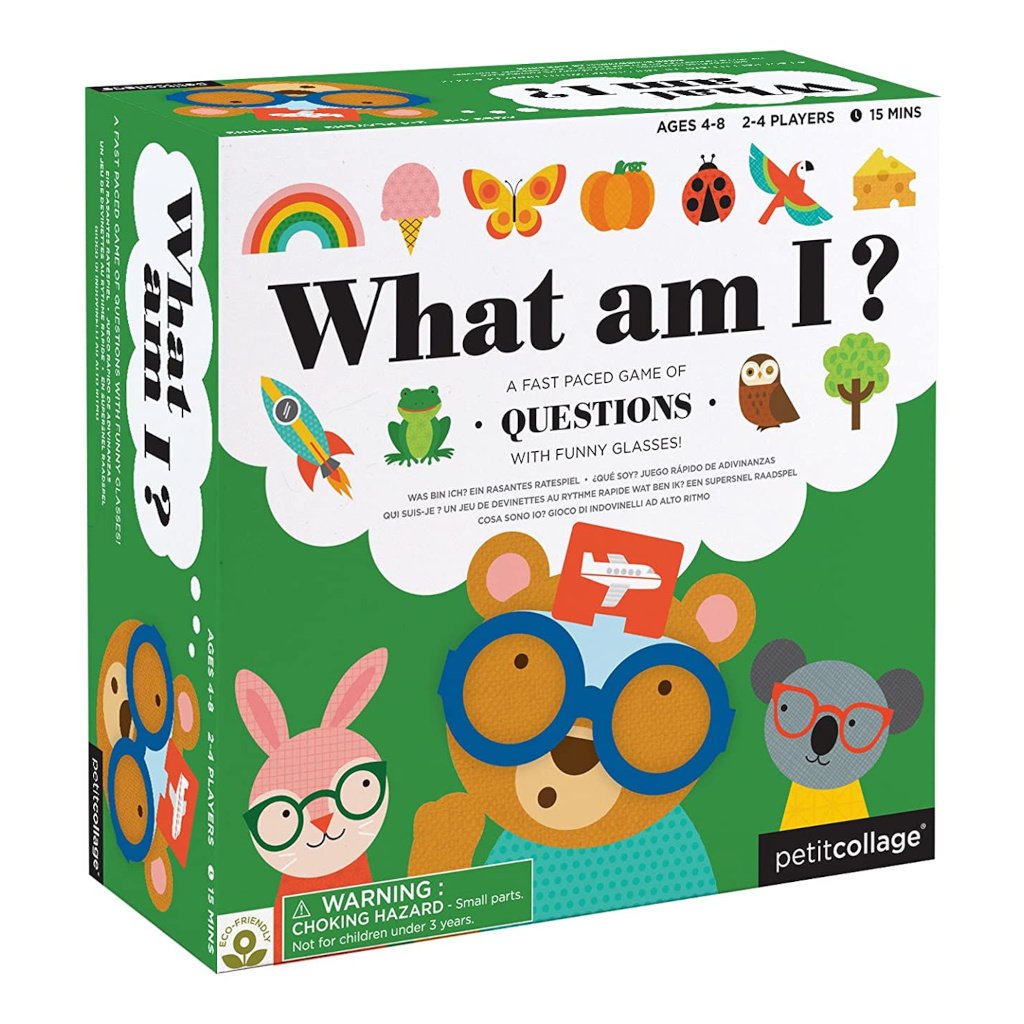 Jsem zvíře? Jsem objekt? Jsem velký/á? Vydávám zvuky? Tolik otázek, tak málo času! Rychlá hra What Am I? od Petit Collage pro celou rodinu, která Vám zaručí hodně smíchu a zábavy. Obsahuje 4 brýle s držákem na kartu, přesýpací hodiny a 50 barevných karet s obrázky.