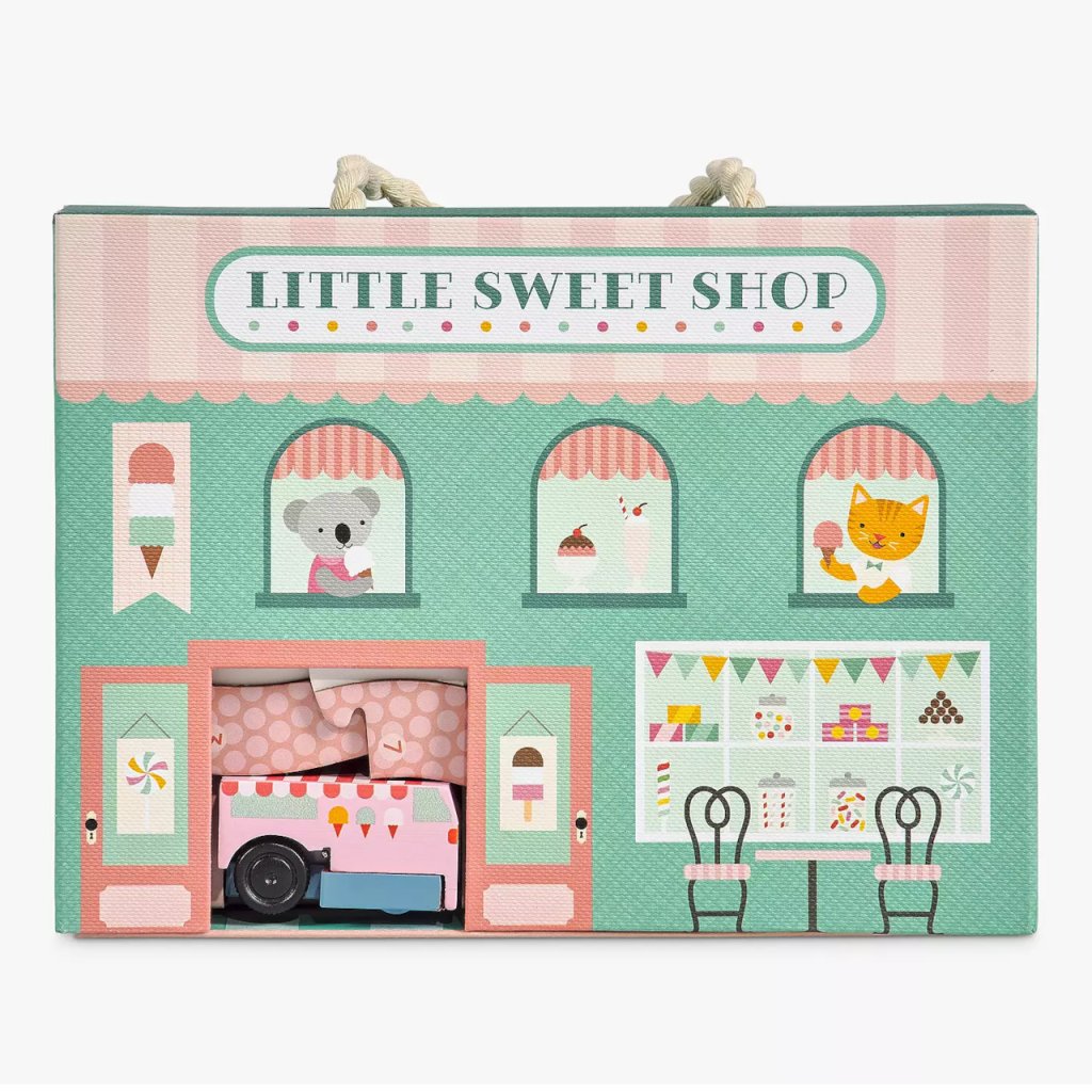 Čas na sladkou odměnu! Natáhněte zmrzlinářské auto a sledujte, jak jede kolem cukrárny ke svému cíli! Little Sweet Shop od Petit Collage je perfektní hračka pro hodiny představivé hry. Krabici lze jednoduše přenášet díky madlu z lana.