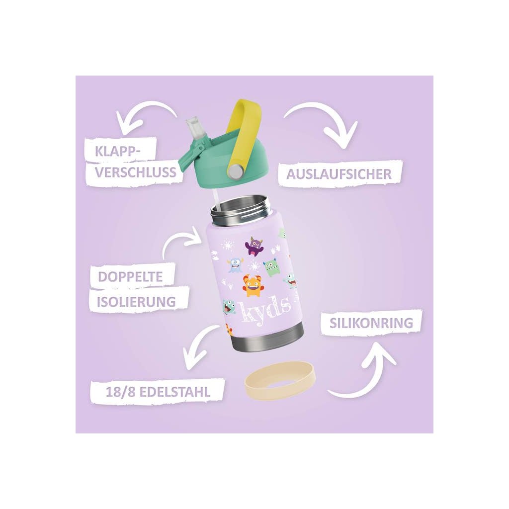 Inovativní dětská termoláhev od značky Kyds: Udrží nápoje teplé nebo studené po dlouhou dobu, ideální do školy, na výlety a na dobrodružství – robustní, nepropustná a perfektní pro malé ručičky!