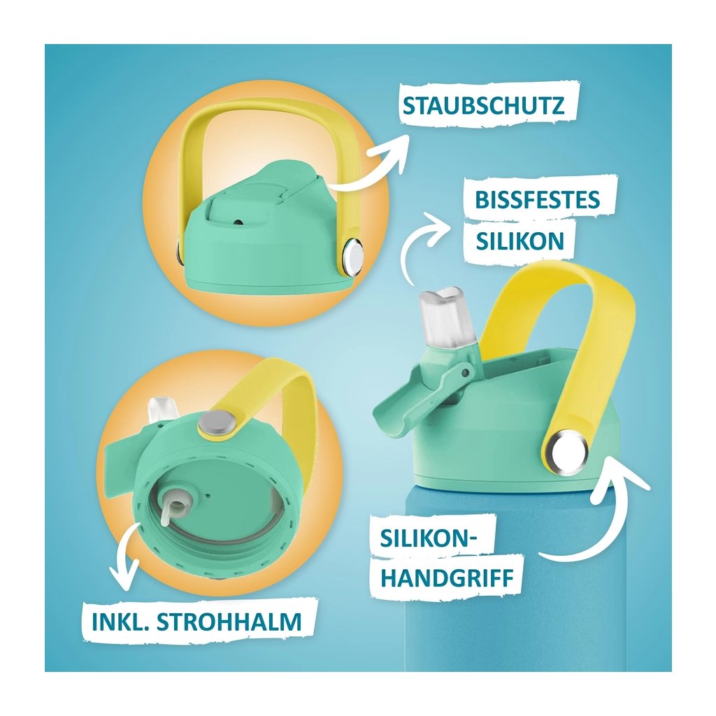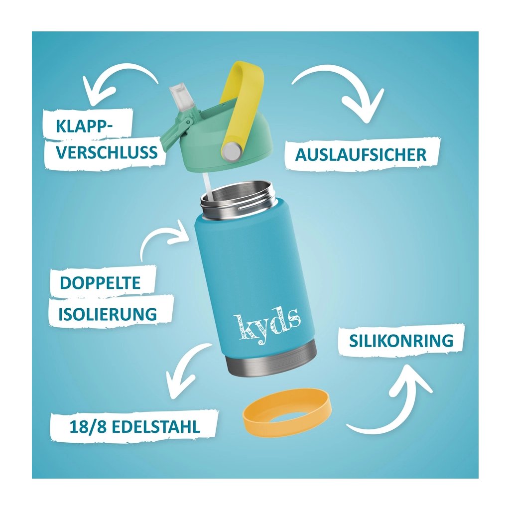 Inovativní dětská termoláhev od značky Kyds: Udrží nápoje teplé nebo studené po dlouhou dobu, ideální do školy, na výlety a na dobrodružství – robustní, nepropustná a perfektní pro malé ručičky!