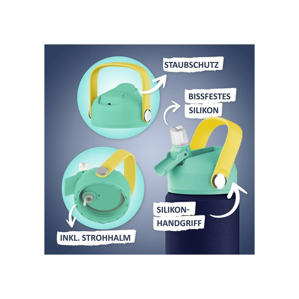 Inovativní dětská termoláhev od značky Kyds: Udrží nápoje teplé nebo studené po dlouhou dobu, ideální do školy, na výlety a na dobrodružství – robustní, nepropustná a perfektní pro malé ručičky!