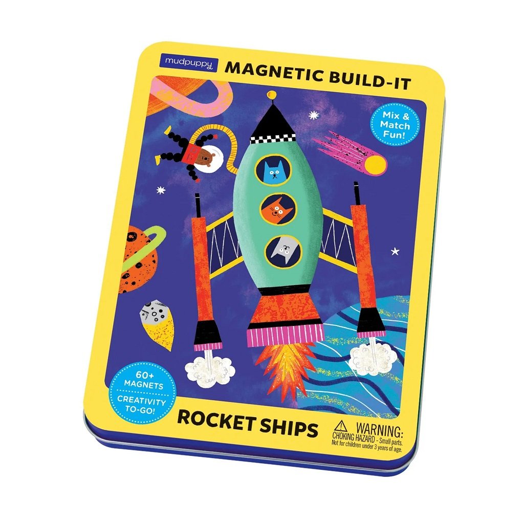 Magnetická sada obsahuje 2 ilustrované scény a 3 archy různých magnetů na sestavení rakety. Hra Rocket Ship nabízí hodiny nápaditého hraní, při kterém dítě rozvíjí představivost a kreativitu. Plechový obal se snadno sbalí do batůžku jako cestovní hračka.