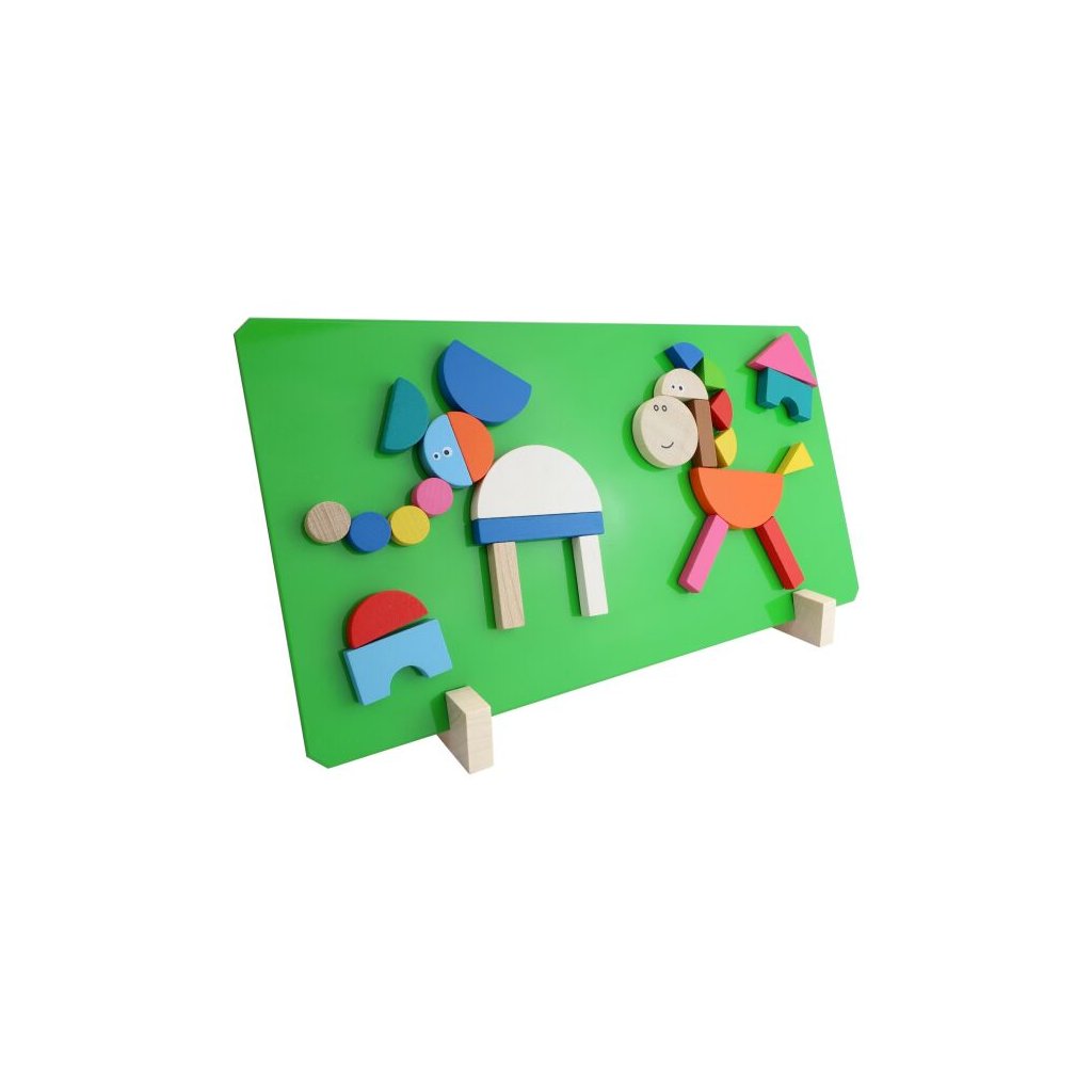 Velmi oblíbená hra pro děti, tentokrát se zvířátky. Výrobek obsahuje magnetickou tabulku zelené barvy, stojánky a 44 dřevěných dílků s magnetem, z nichž lze sestavit různé obrázky jak zvířátek, tak různých staveb, které znáš ze ZOO.