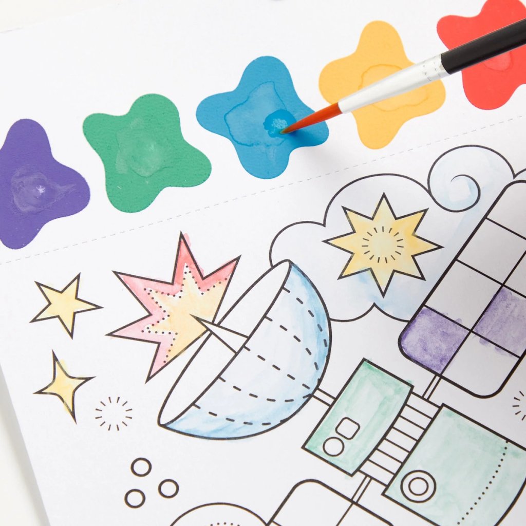 Tato sada je vhodná pro malé umělce. Rozvíjí tvůrčí myšlení, motoriku a soustředění. Sada obsahuje štětec a 10 předtištěných listů k vybarvení. Každý z listu s vesmírnou tématikou má na sobě také paletku barev. Stačí tedy jen malinko namočit štětec a můžete začít vybarvovat. Navíc každý list má i perforovaný okraj a umožňuje tak oddělit hotovou kresbu od paletky barev. Splňuje všechny aktuální evropské bezpečnostní normy.