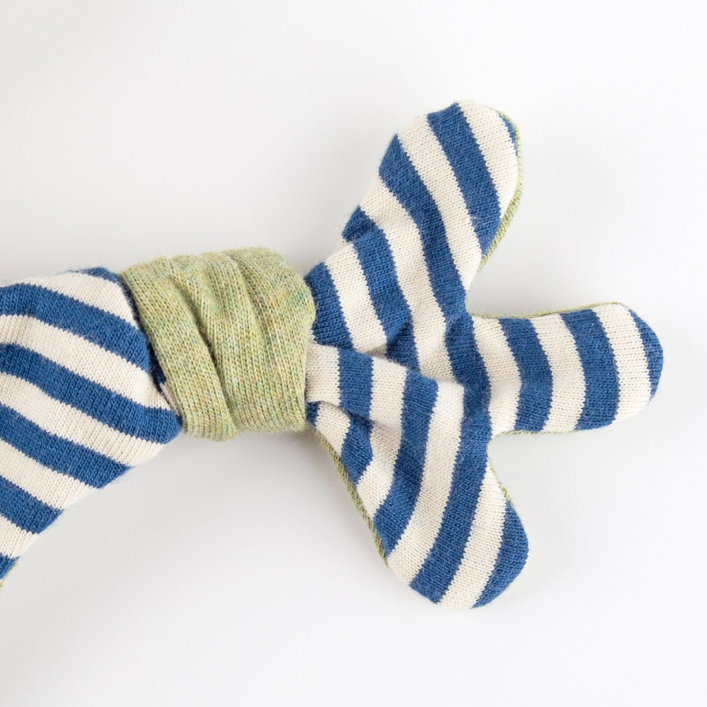 Uzlíky na koncích jsou ideální pro uchopení, žabí oči a uzlíky jsou vhodné pro cucání. Měkký materiál je příjemný na dotek a poskytuje pohodlí. Hračka stimuluje smysly dítěte a podporuje jeho jemnou motoriku.