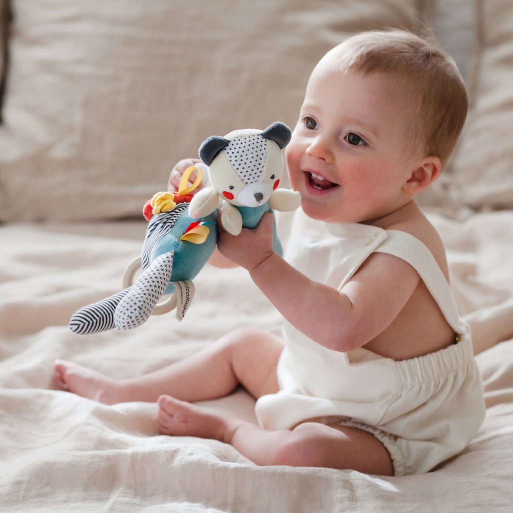 Tento malý medvídek je ideální organickou hračkou pro miminko. Hračka je ručně vyrobená, slouží jako kousátko nebo jako medvídek k mazlení. Hračka je určena pro novorozence.