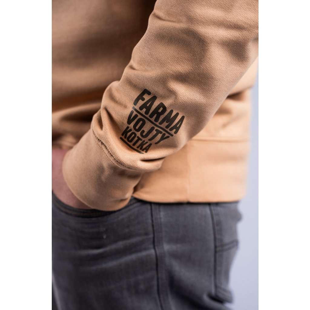Oficiální mikina z kolekce FARMA Vojty Kotka, navržená pro všechny milovníky přírody, venkova a čistého designu s charakterem. Na zádech najdeš výrazný cejch FARMY, inspirovaný tradičním vypalovaným značením na dřevo a dobytek. Na rukávu je stylový razítkový potisk s textem FARMA Vojty Kotka, který dodává mikině autentickou rustikální estetiku. Mikina má moderní unisex střih, je příjemně měkká na těle, ale přitom pevná a kvalitní díky vysoké gramáži. V barvě béžové působí přirozeně, teple a univerzálně, sluší mužům i ženám.