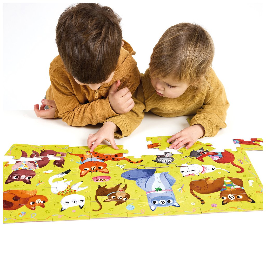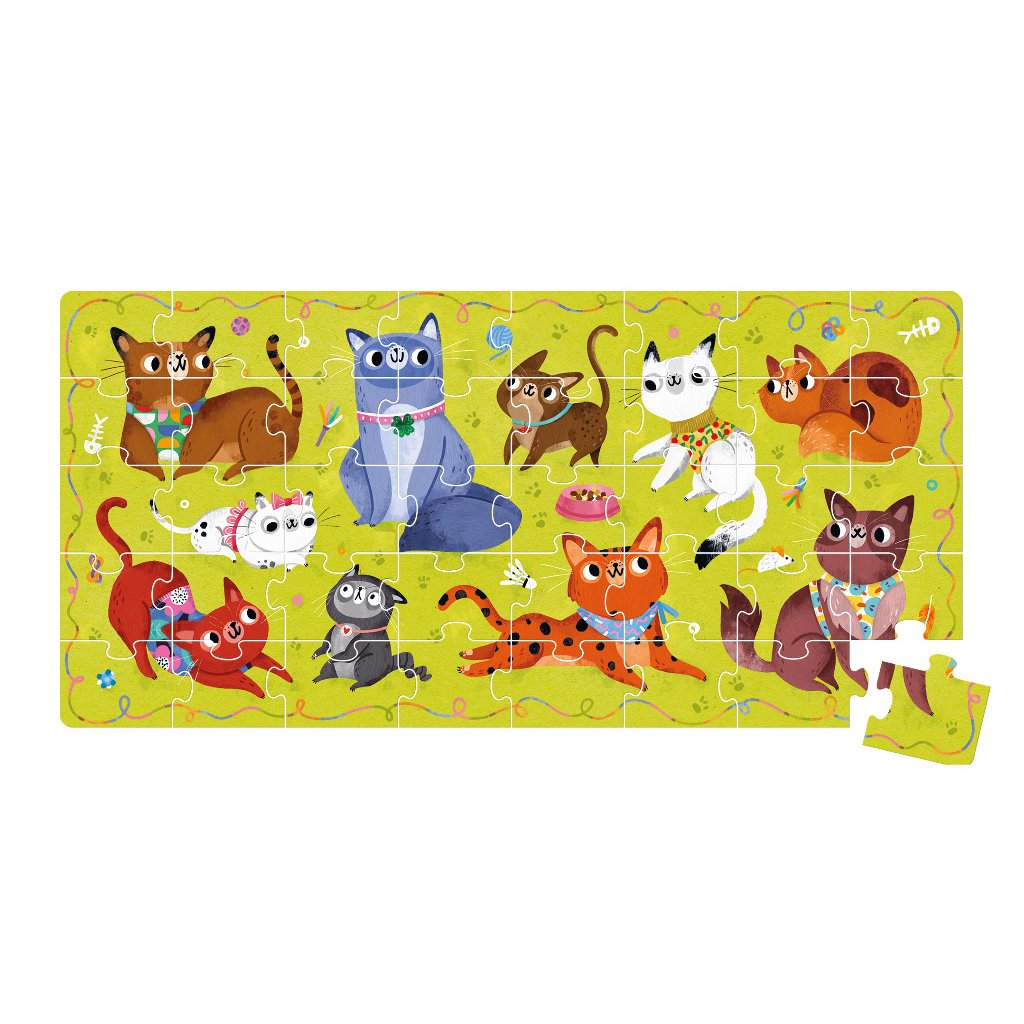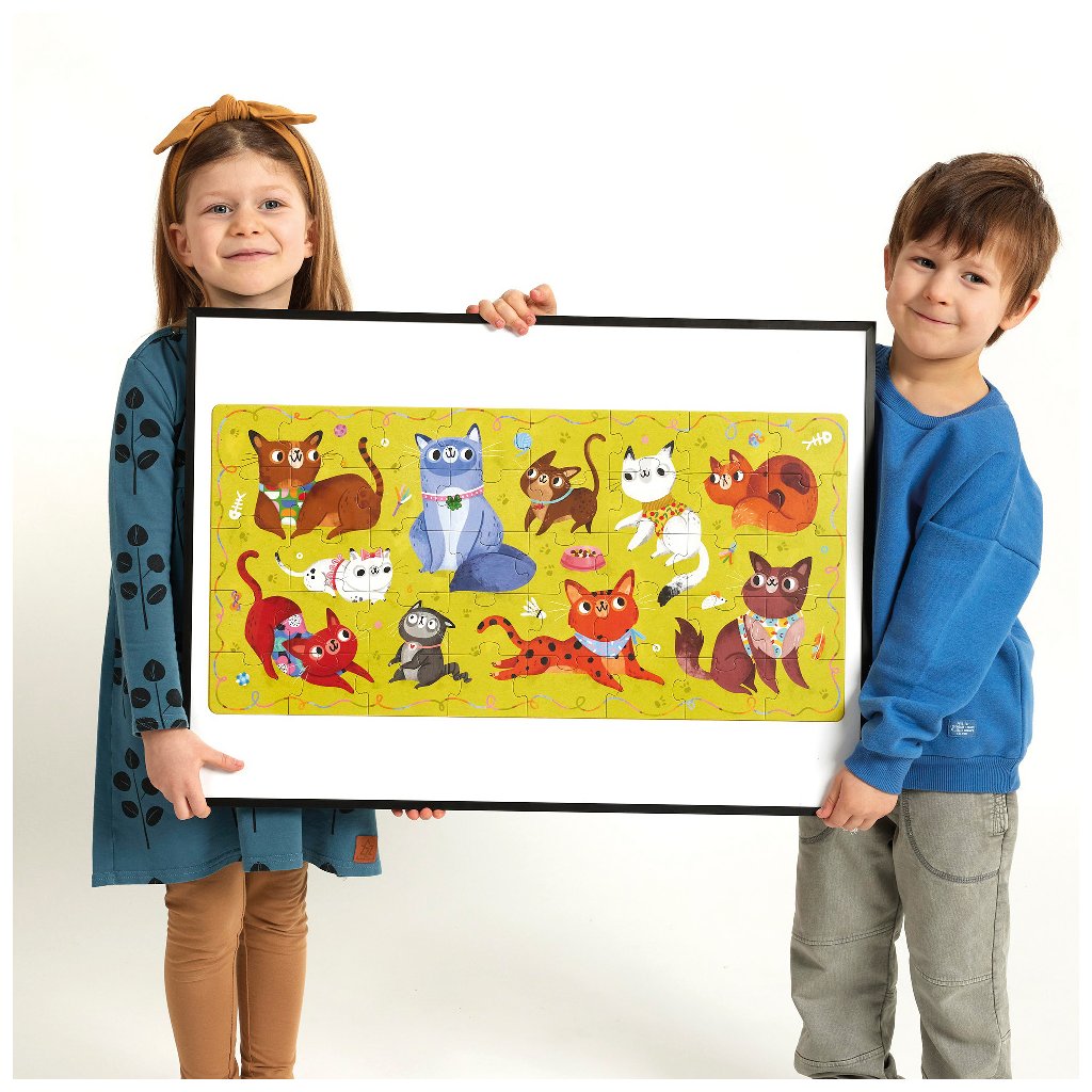 Toto puzzle s motivem koček je skvělým způsobem, jak děti zabavit a podpořit jejich rozvoj při skládání obrázku oblíbených zvířat.