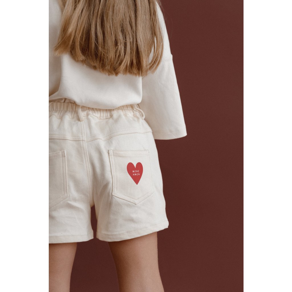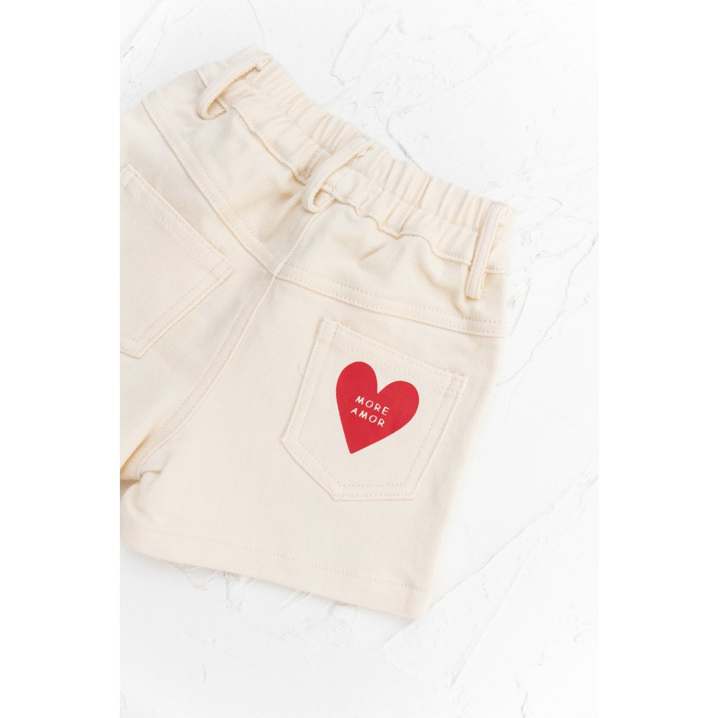 Přidejte trochu lásky do jejich šatníku s našimi džínsovými šortkami More Amor. S uvolněným střihem a stylovými detaily jsou tyto šortky ideální pro celodenní hraní. Vyrobené ze 100 % bavlny. Dostupné od velikosti 0-3M až po 9Y, navrženy tak, aby se přizpůsobily pohybu vašeho dítěte a zároveň je udržely pohodlné a trendy.
