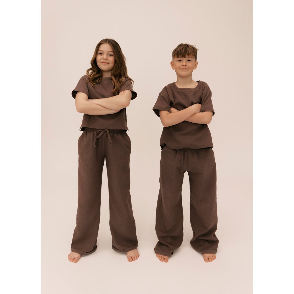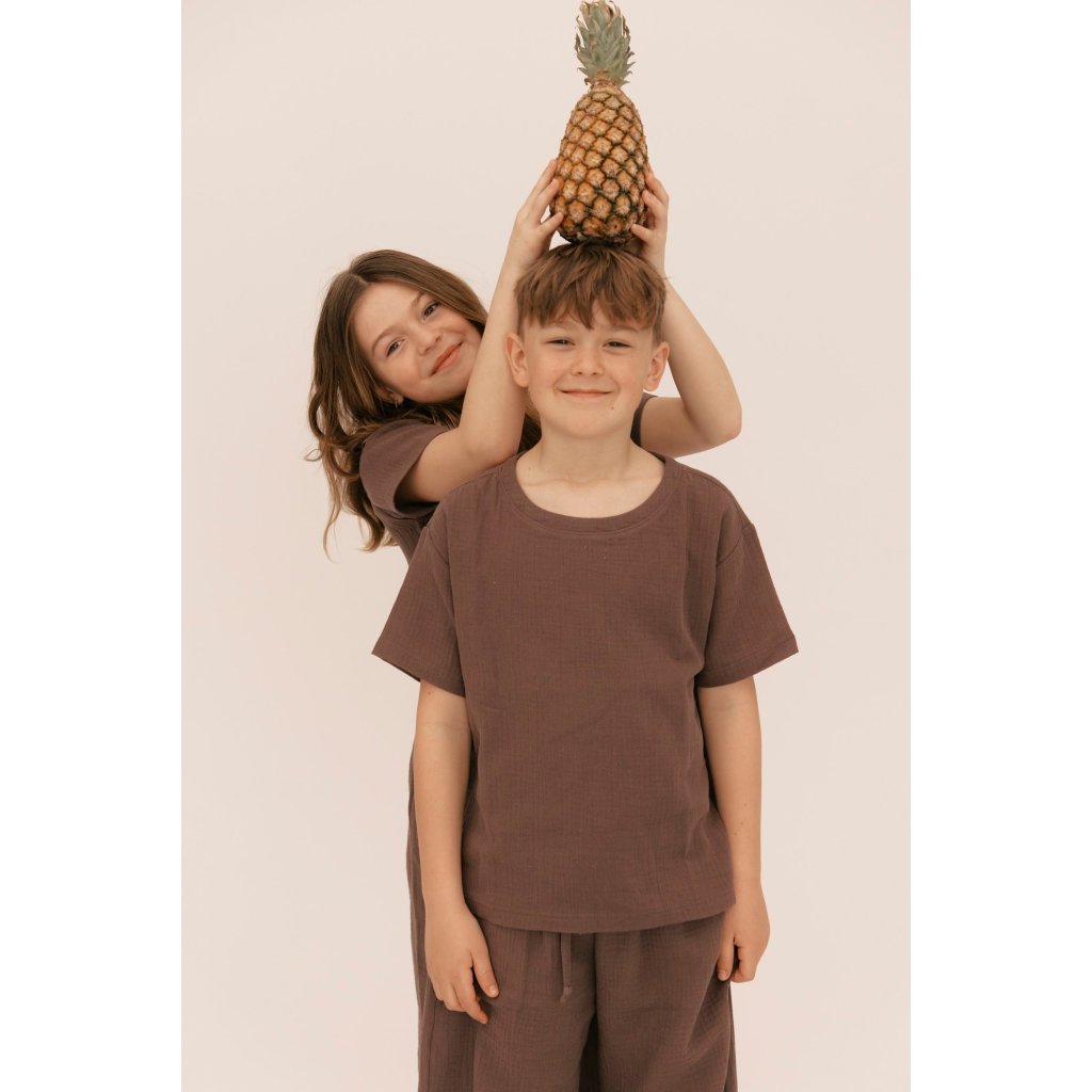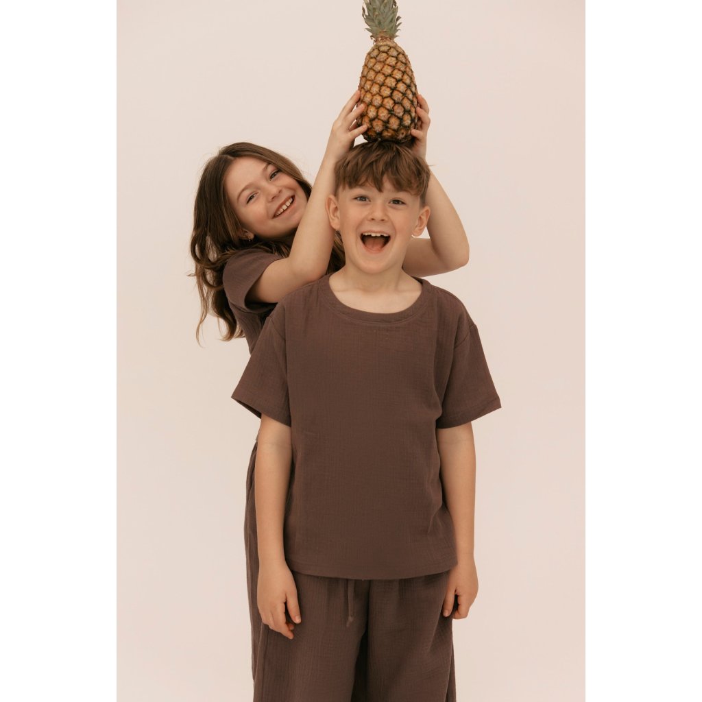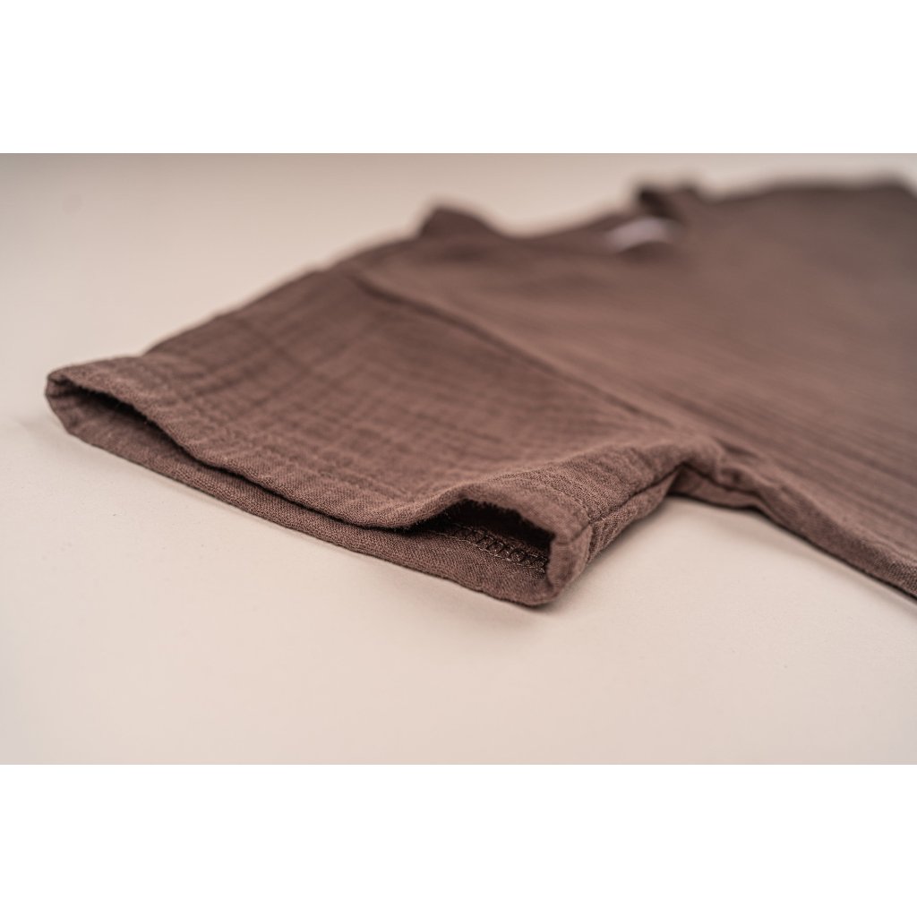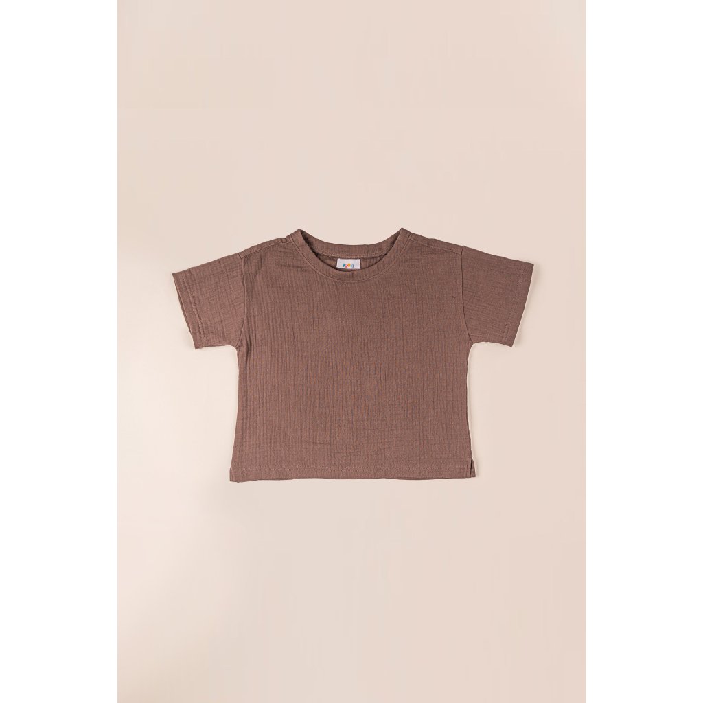 Pohodlné, vzdušné a stylové. Toto mušelínové tričko z prémiové 100% bavlny je ideální volbou pro aktivní děti, které milují svobodu pohybu. Volnější střih neomezuje v žádné hře a zároveň působí elegantně a nadčasově.