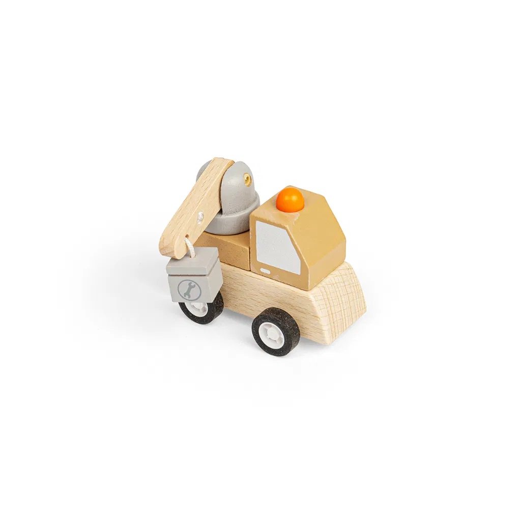 Toto dřevěné natahovací stavební autíčko je součástí řady cenově dostupných hraček, které nejsou jen zábavné, ale i edukativní. Je vyrobeno z kvalitního, udržitelného dřeva s certifikací FSC® a nabarveno netoxickými barvami a laky, což zaručuje bezpečné hraní pro vaše děti. Produkt splňuje všechny evropské bezpečnostní normy.