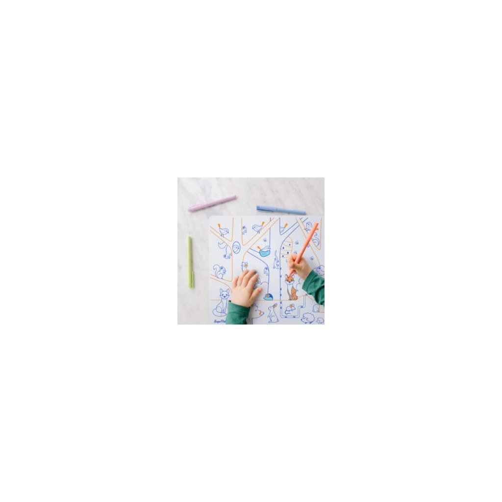 Francouzská značka Super Petit vznikla z potřeby dvou sester nabídnout dětem kreativní hru bez obrazovek, a přitom šetrnou k přírodě. Jejich hlavním hitem jsou silikonové omalovánky – omyvatelné podložky, které děti mohou znovu a znovu vybarvovat, mazat a tvořit nové světy.