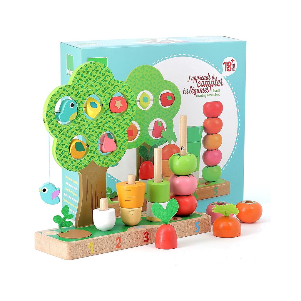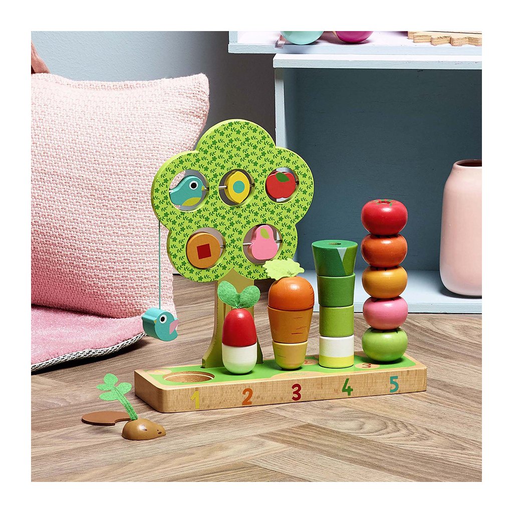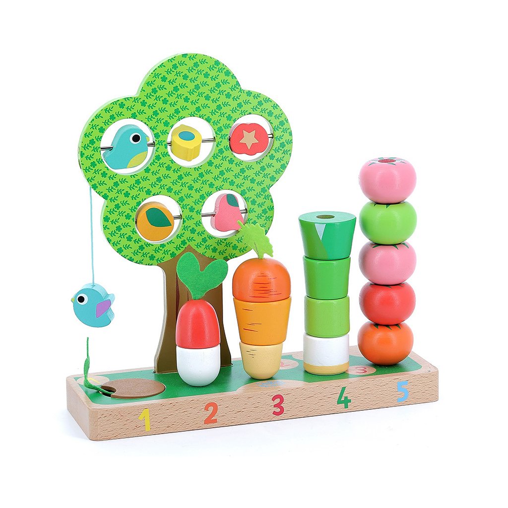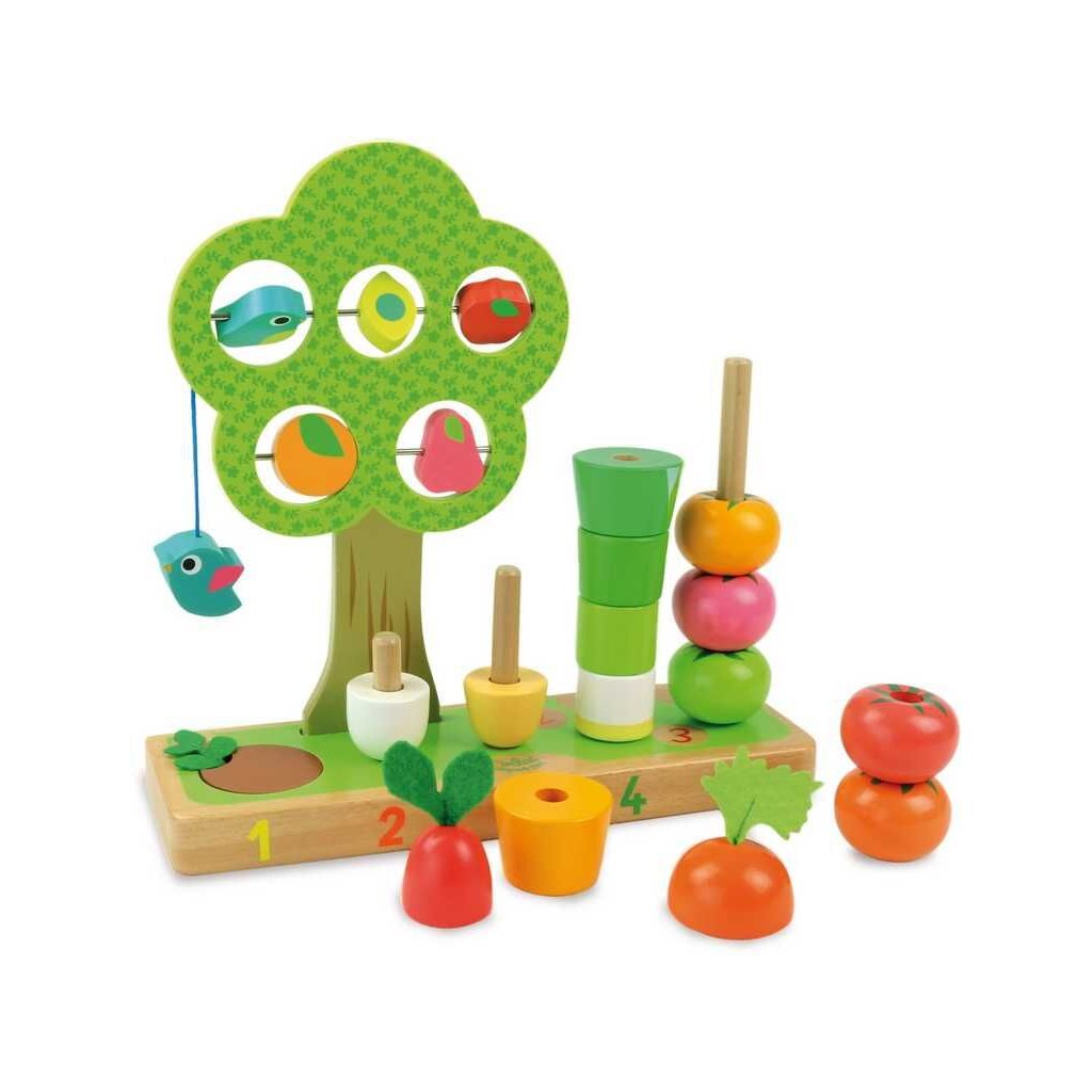 Hra, která probudí smysly dětí je ideální k učení počítání a rozeznávání tvarů. Tato dřevěná hračka se skládá ze základní desky, zeleniny a stromu s otočnými dílky. Zelenina obsahuje například mrkev, pórek a rajčata. Zeleninu a její dílky děti navlékají na dřevěné tyče. Nejvyšší z tyčí je upevněna na provázku, v případě pádu dítěte na ní, se tyč odkloní. Hračka je certifikovaná pro věk 1,5+.
