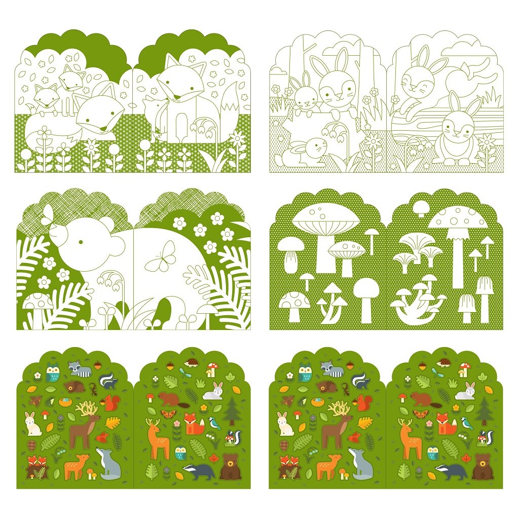 Připravte pastelky pro tyto rozkošná zvířátka! V omalovánkách Woodland najdete výjevy jako např. rodinku jelenů pasoucích se na voňavé louce, medvědí sourozence dovádějící v říčce mezi rybami či líné mývaly, jenž si na větvích spokojeně lebedí! Scény lze po vybarvení dozdobit prvky z velké sady přibalených pestrobarevných samolepek. Jednoduché roztomilé tvary děti nadchnou a rozjitří jejich fantazii. Vyrobeno z udržitelně získaného papíru FSC.