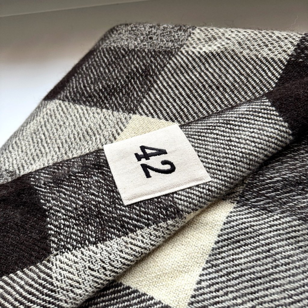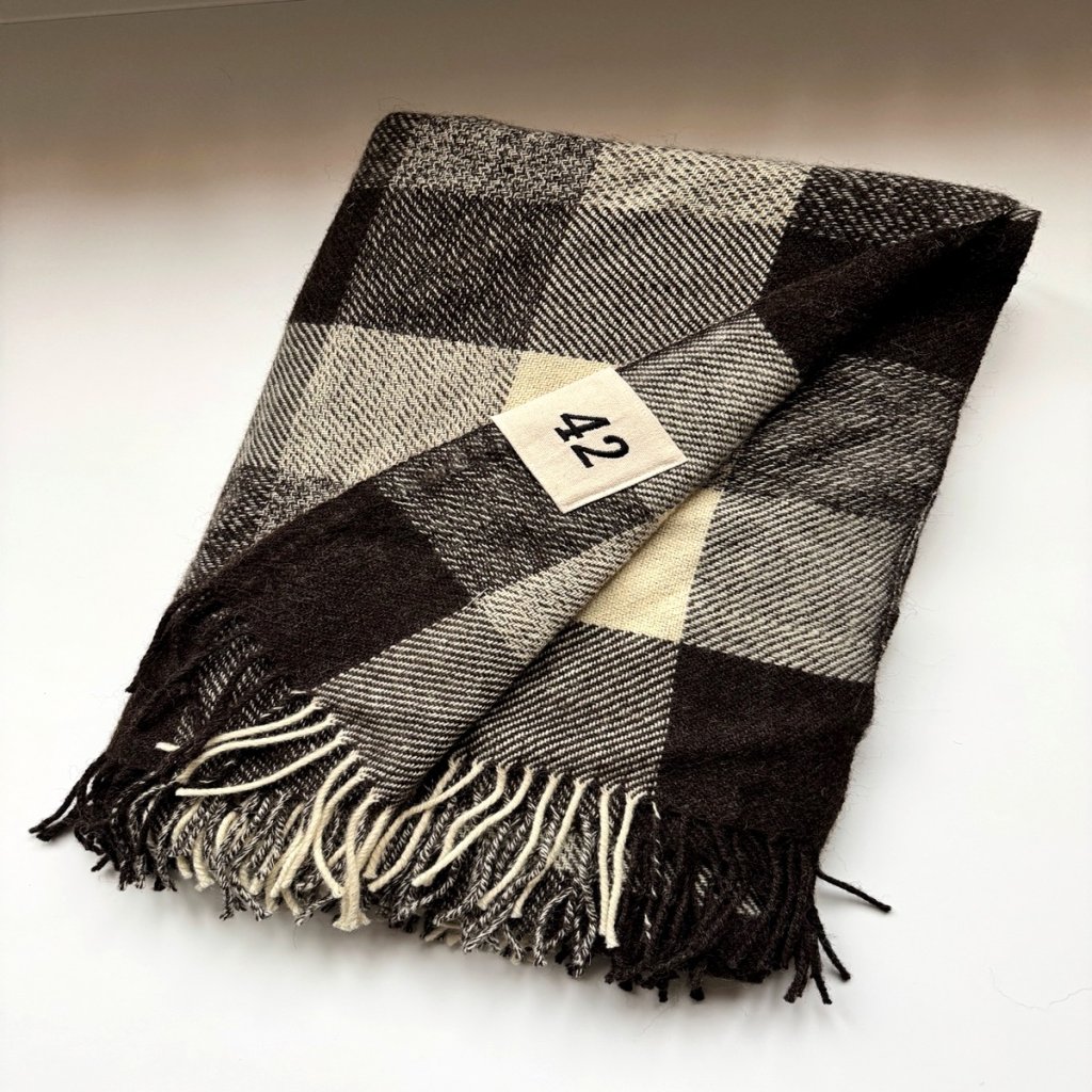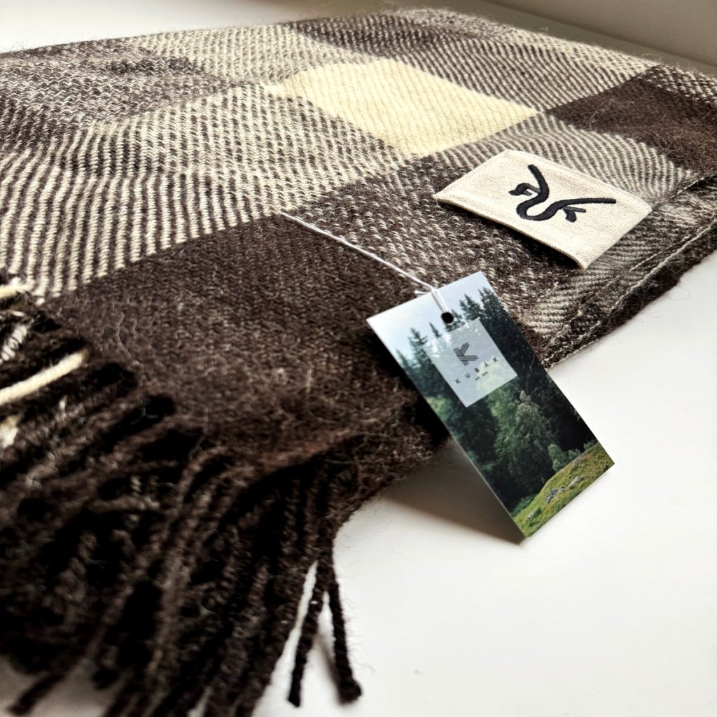 Tento výjimečný kousek vznikl z vlny našich oveček plemene Zwartbles, které žijí na naší farmě. Po ručním stříhání a třídění byla vlna zpracována a utkána v tradiční české tkalcovně Kubák, jedné z posledních tkalcoven u nás. Výroba probíhala na historických stavech a s maximální péčí o detail. Každý produkt nese čistý příběh českého řemesla - od oveček na pastvině, přes předení, až po finální tkaní.