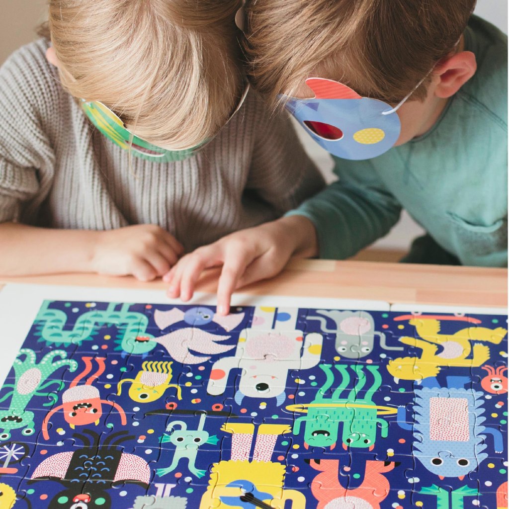 Puzzle Příšerky s 3D brýlemi - 100 dílků | Petit Collage