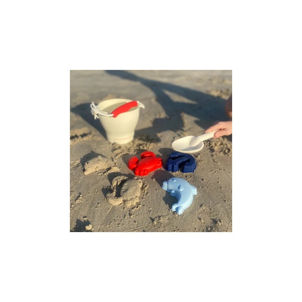 Sada na písek je v nadčasových bílo-modro-červených barvách a je vyrobena z kvalitního silikonu, takže dětem dlouho vydrží a snadno se udržuje. Prémiová holandská značka Swim Essentials se zaměřuje na vysokou kvalitu, funkčnost a originální design svých výrobků.
