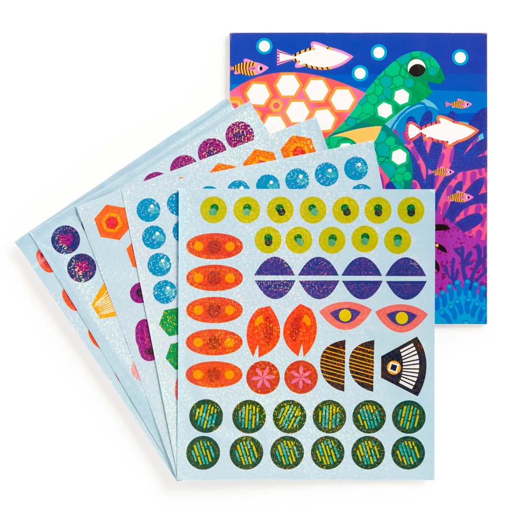 Rozvíjejte fantazii svého dítěte a vydejte se na magické dobrodružství plné rozkošných třpytivých obrázků a zářivých barev! Sada samolepek obsahuje pestrobarevnou scénu podmořského světa s více než 200 třpytivými holografickými samolepkami. Děti mohou scénu podmořského korálového útesu oživit a rozzářit pomocí samolepek. Sada je interaktivní, zábavná a poskytuje dětem zážitky při hře bez obrazovek a podporuje učení. Rozvíjí dovednosti dětí v různých oblastech včetně koordinace ruka-oko, rozpoznávání barev, vizuálního rozlišování, kreativity a vytrvalosti. Samolepky se snadno odlepují a nalepují, takže i malým ručičkám umožňují tvorbu krásných uměleckých děl. Sada byla vytvořena podle námětu Natalie Marshall, umělkyně, která se inspiruje barvami a texturami nacházejícími se v přírodě, motýly počínaje a korálovými útesy konče. Vyrobeno z papíru s certifikací FSC® a potištěno rostlinnými barvami. Všechny produkty splňují bezpečnostní předpisy CPSIA, ASTM a CE.