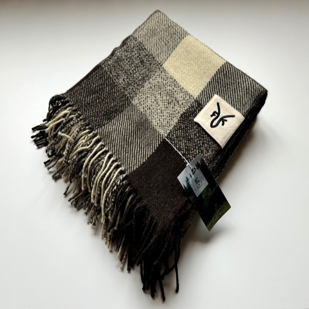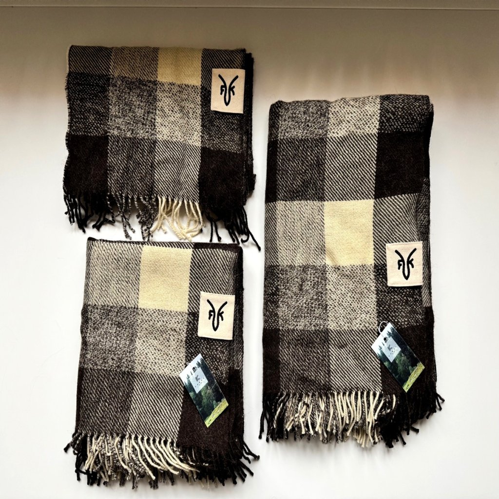 Tento výjimečný kousek vznikl z vlny našich oveček plemene Zwartbles, které žijí na naší farmě. Po ručním stříhání a třídění byla vlna zpracována a utkána v tradiční české tkalcovně Kubák, jedné z posledních tkalcoven u nás. Výroba probíhala na historických stavech a s maximální péčí o detail. Každý produkt nese čistý příběh českého řemesla - od oveček na pastvině, přes předení, až po finální tkaní.