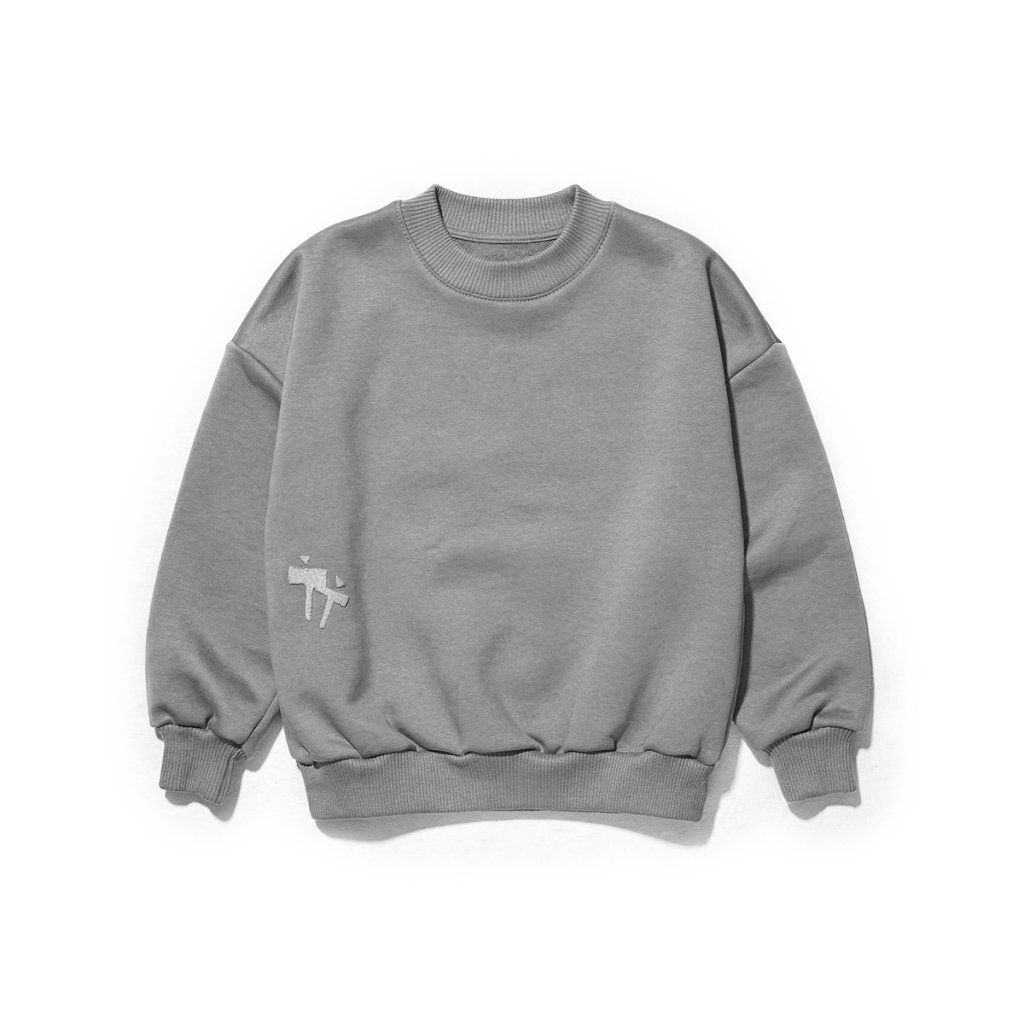 Světle šedá dětská mikina z kolekce Monochrome Love je jemnější alternativou k černé klasice. Neutrální barva, oversized střih a příjemný materiál z ní dělají univerzální kousek do každého dětského šatníku.