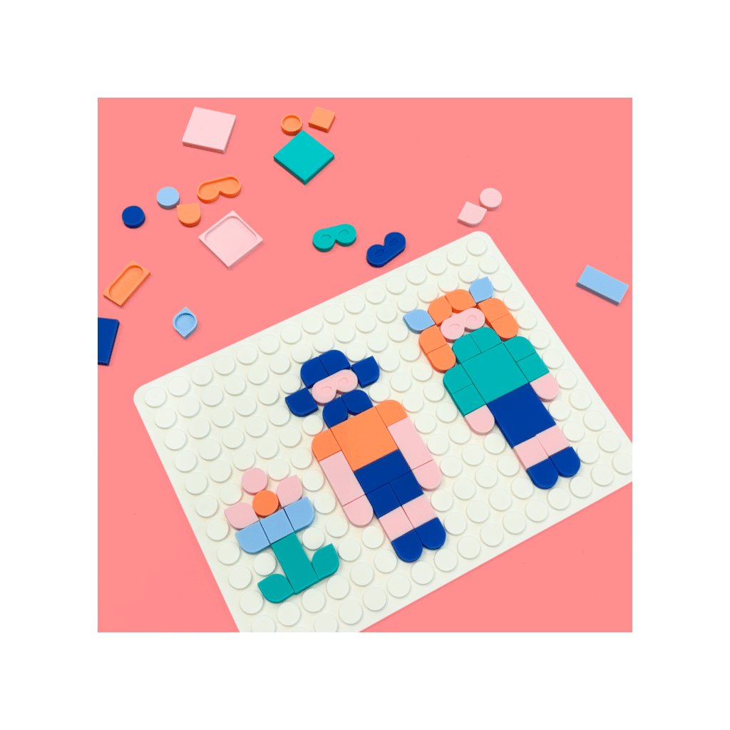 Silikonová podložka a 65 barevných dlaždic pro nekonečné kreativní tvoření bez lepidla a bez nepořádku. Podporuje jemnou motoriku, kreativitu a smyslové vnímání. Ideální na cesty i domů. Od 3 let.