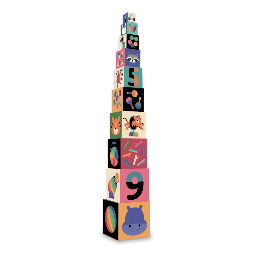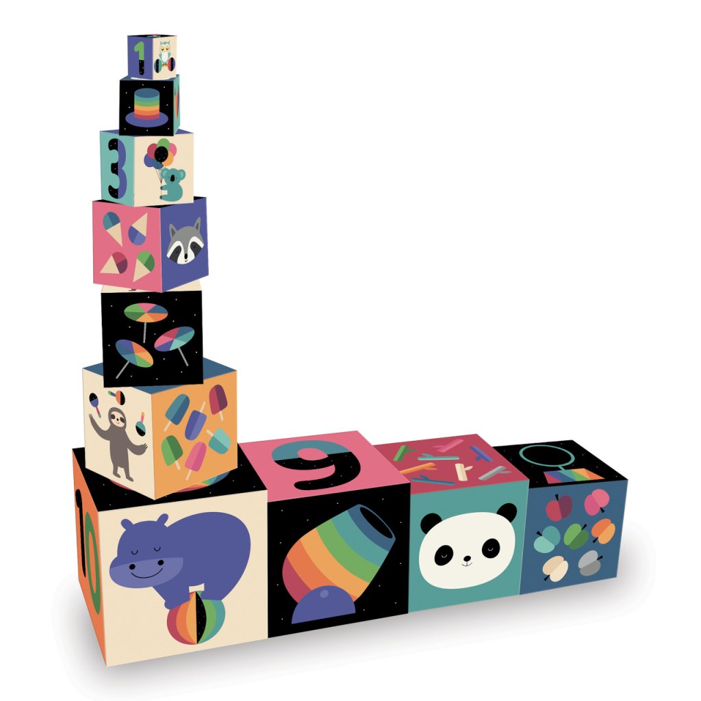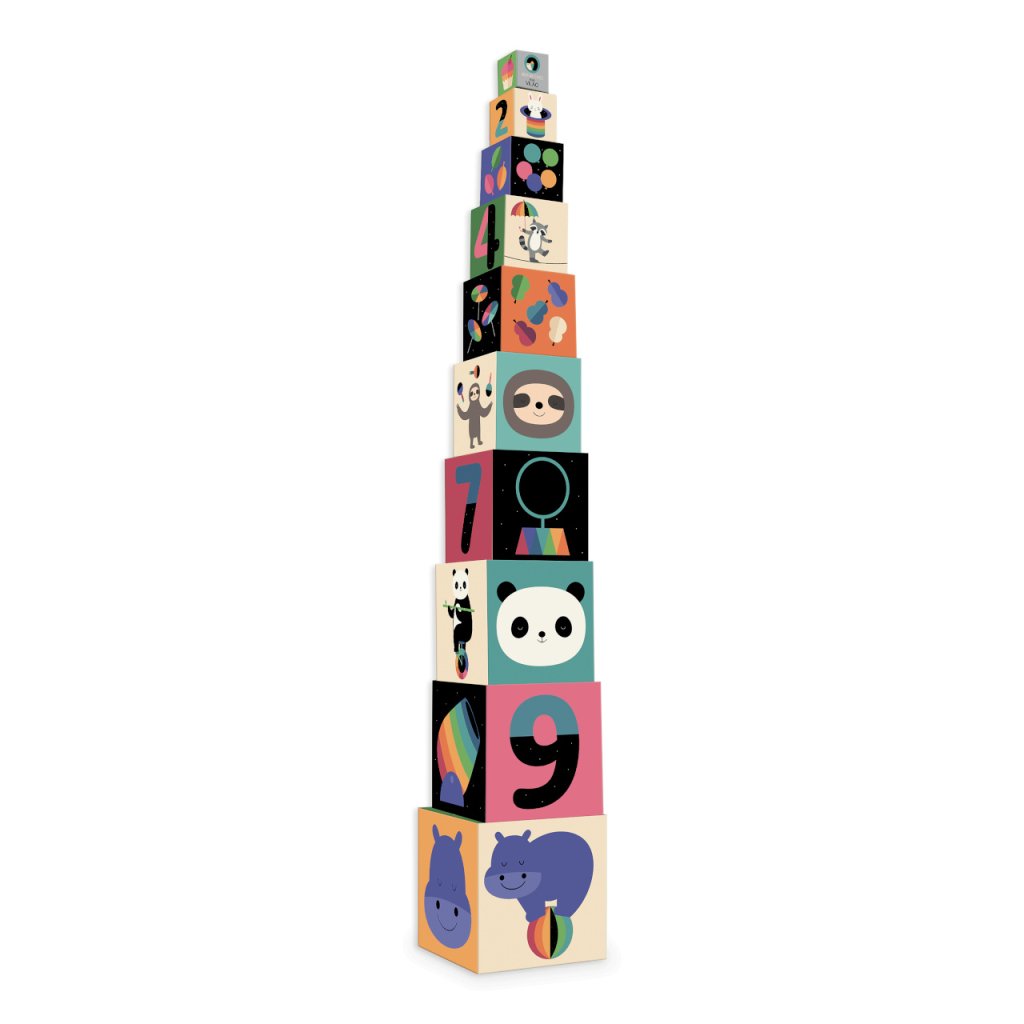 Nechejte děti objevovat duhový svět roztomilých cirkusových zvířat výtvarníka Andyho Westface, se soupravou jedinečných stohovatelných kostek. Stěny kostek obsahují originální ilustrace vztahující se také k příslušnému číslu. Nejmenší tak mohou čísla zábavně poznávat nejen prostřednictvím vztahu k velikosti a rozvíjet poznávací i početní dovednosti. Díky stohovacímu provedení je hračka velmi skladná, zároveň ale umožňuje postavit až 87 cm vysokou věž a rozložená se stane nepřehlédnutelnou ozdobou dětského pokoje.