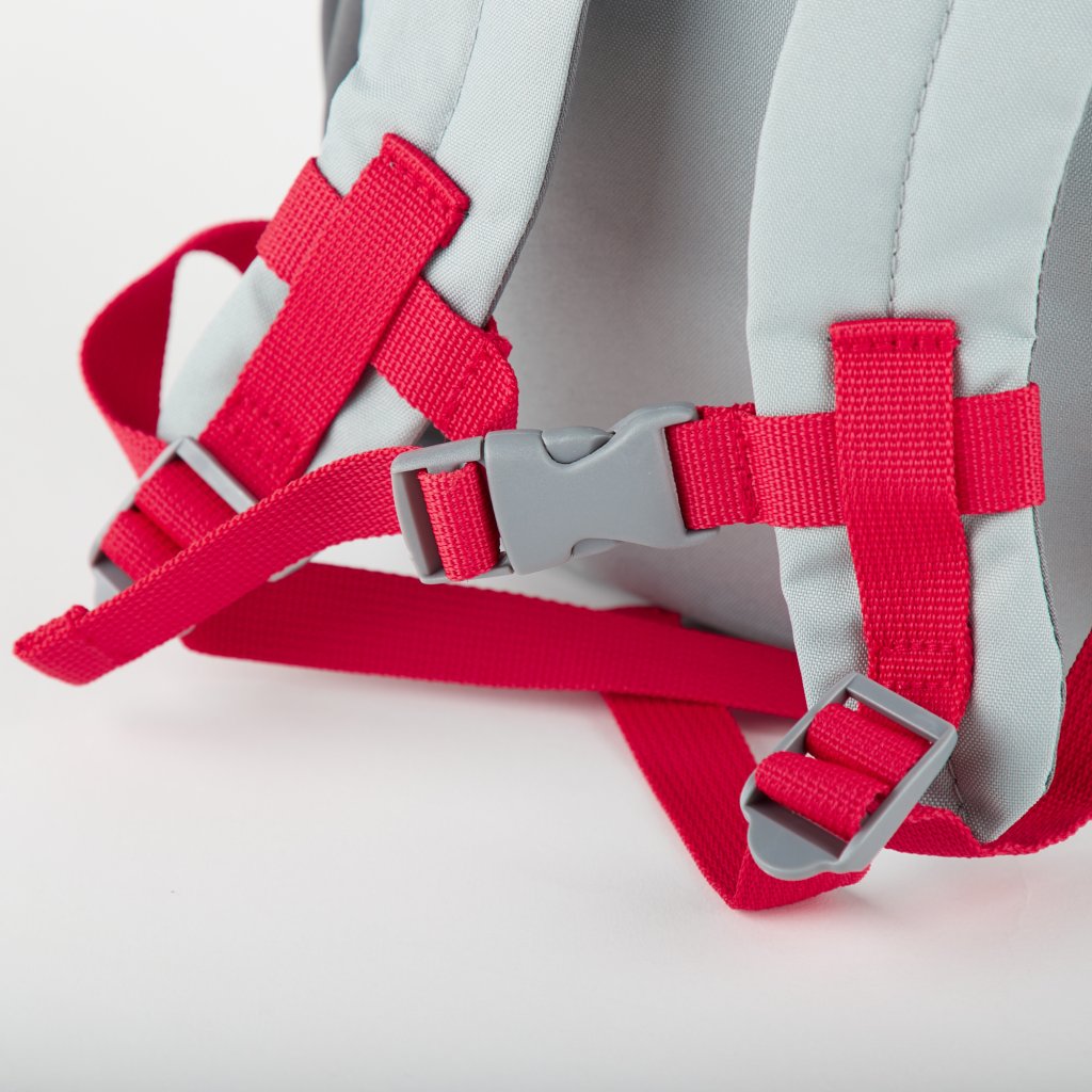 Batůžek s motivem slona v šedé barvě zaujme na první pohled roztomilým obličejem, ušima, chobotem a tlapkami po stranách. Hlavní kapsa se zapíná na oboustranný zip a je doplněna o kvalitní vnitřní podšívku a malou vnitřní kapsu na zip. Na bocích se nachází dvě kapsy, ideální na lahvičku. Přední kapsa se zapínáním na zip umožňuje rychlý přístup. Ramenní popruhy jsou polstrované a nastavitelné, stejně jako hrudní popruh s klipem pro lepší stabilitu na dětském těle. Batoh má také široké poutko na zavěšení. Jedna z tlapiček na straně se otevírá na suchý zip a ukrývá jmenovku pro malé majitele. Objem 5,2 litru poskytuje dostatek místa na svačinu, plyšáka i další poklady.