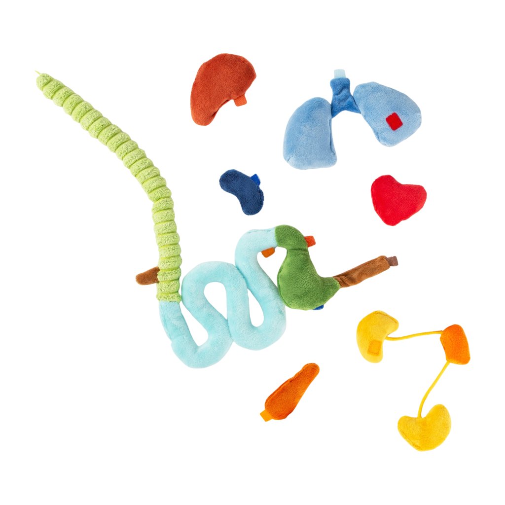 Tato hračka podporuje rozvoj vědomostí o lidském těle, jemné motoriky a koordinace při manipulaci s orgány.