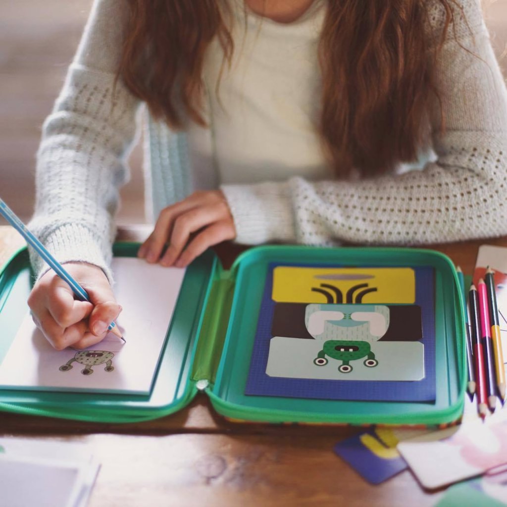 Vytvořte si předlohu a nakreslete příšerku. V balení naleznete 24 kartiček, z kterých si postavíte příšerku dle libosti a poté ji zkusíte nakreslit. Sada Design + Draw Monsters je uložena v magnetickém pouzdru.