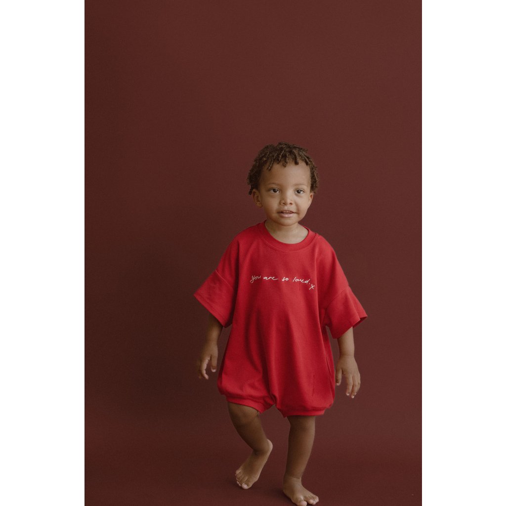 Pohodlí a láska se spojují v našem romperu "You Are So Loved". Vyrobený z měkké směsi 95 % bavlny a 5 % elastanu, tento oversized romper nabízí volný střih pro celodenní pohodlí a snadný pohyb.