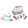 Tato krásná sada sanitky a lékařských nástrojů od značky Green Toys má vše, co malí lékaři a lékařky potřebují ke hře na záchranu. Stačí naskočit do sanitky, dorazit za pacientem a pustit se do ošetřování – ať už jde o nemocného medvídka nebo panenku.